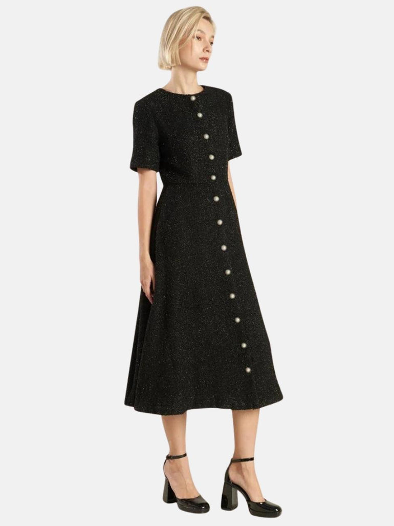 Edie Woven Tweed Midi Dress in Black