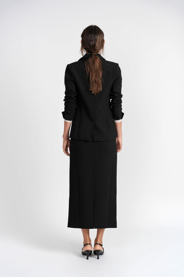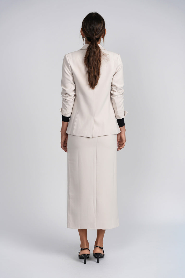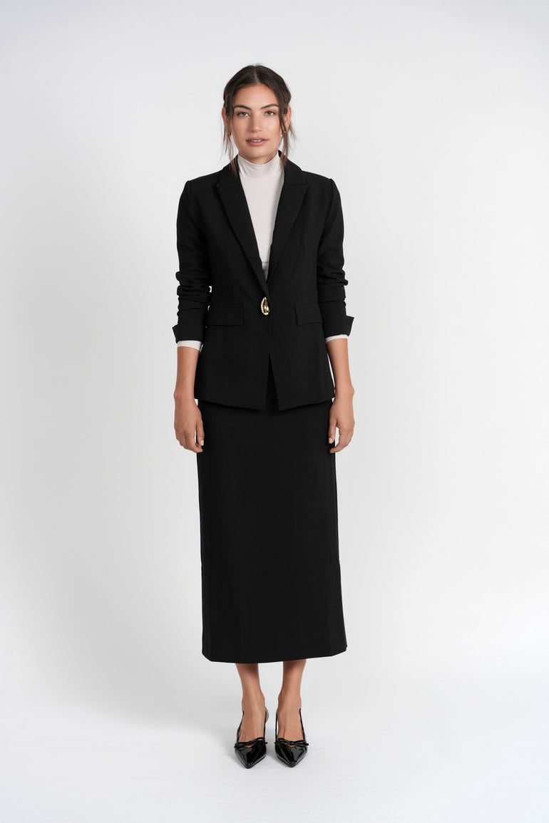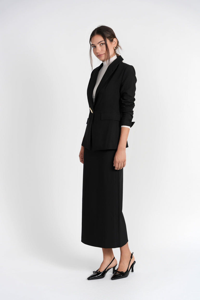 - The Gwen Skirt is a sleek straight maxi crafted from the same refined suiting fabric as the matching blazer.
