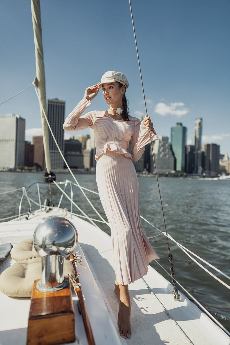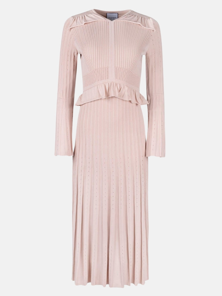 Experience grace and elegance with the Ballet knit midi dress. The delicate pink hue and ruffle waist detail give an air of sophistication. Indulge in premium style and radiate sophistication wherever you go.