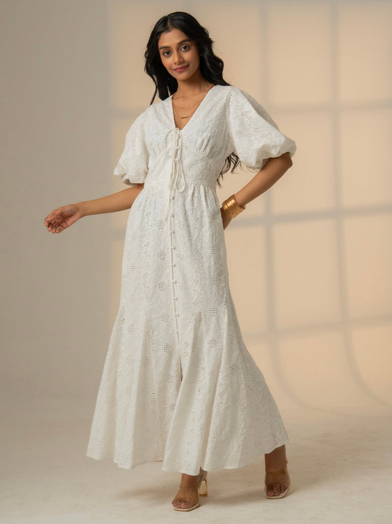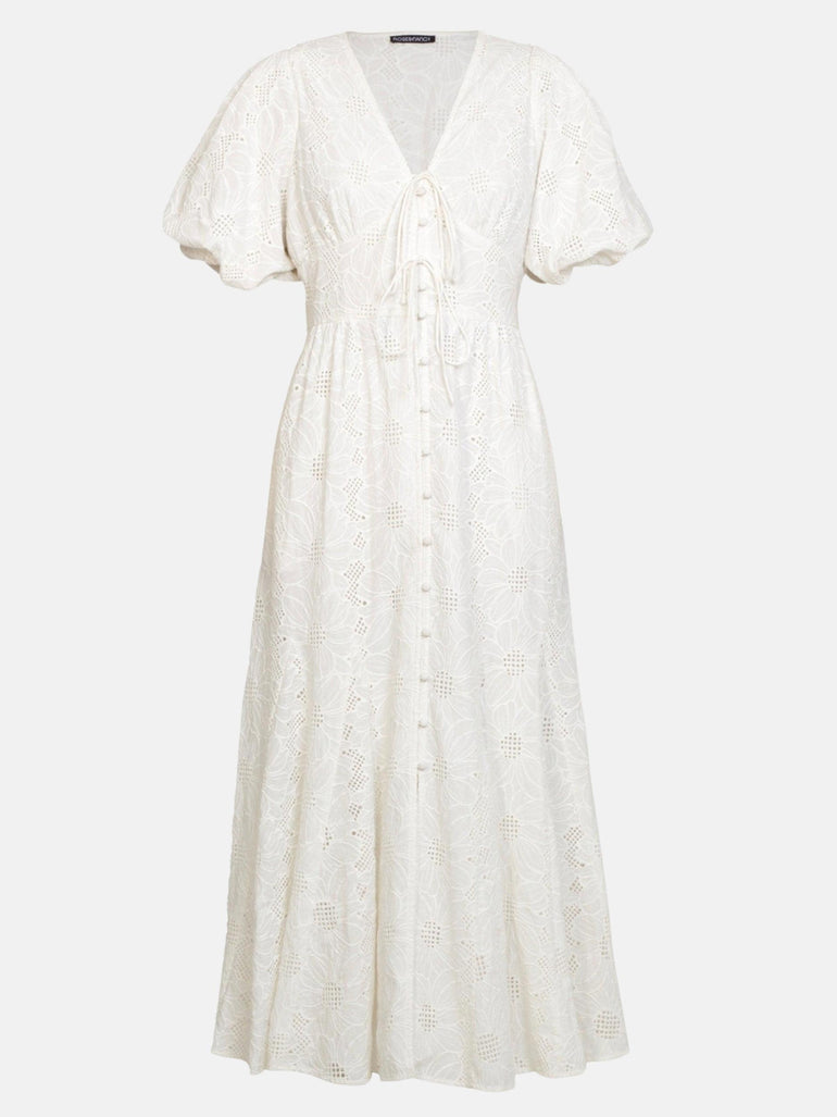 Penny White Lace Button Through Midi Dress