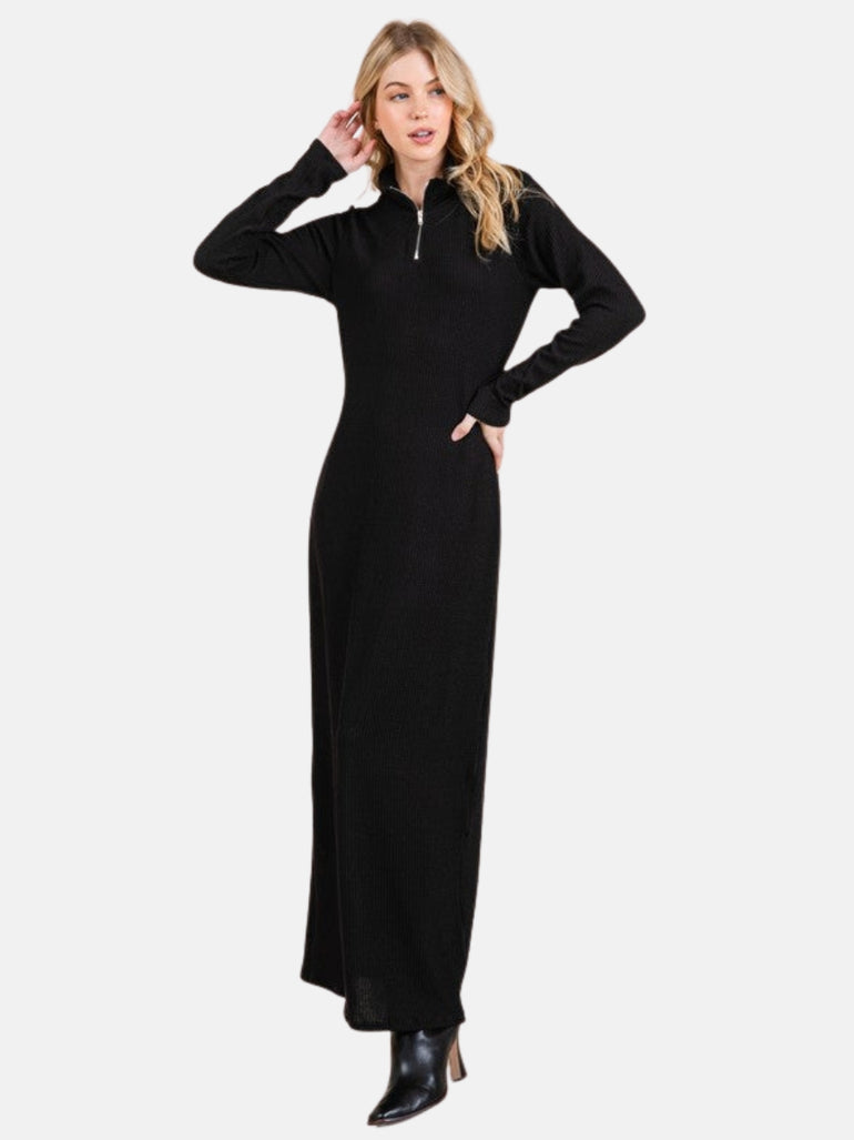 Infinity Ribbed Half Zip Maxi Dress in Black