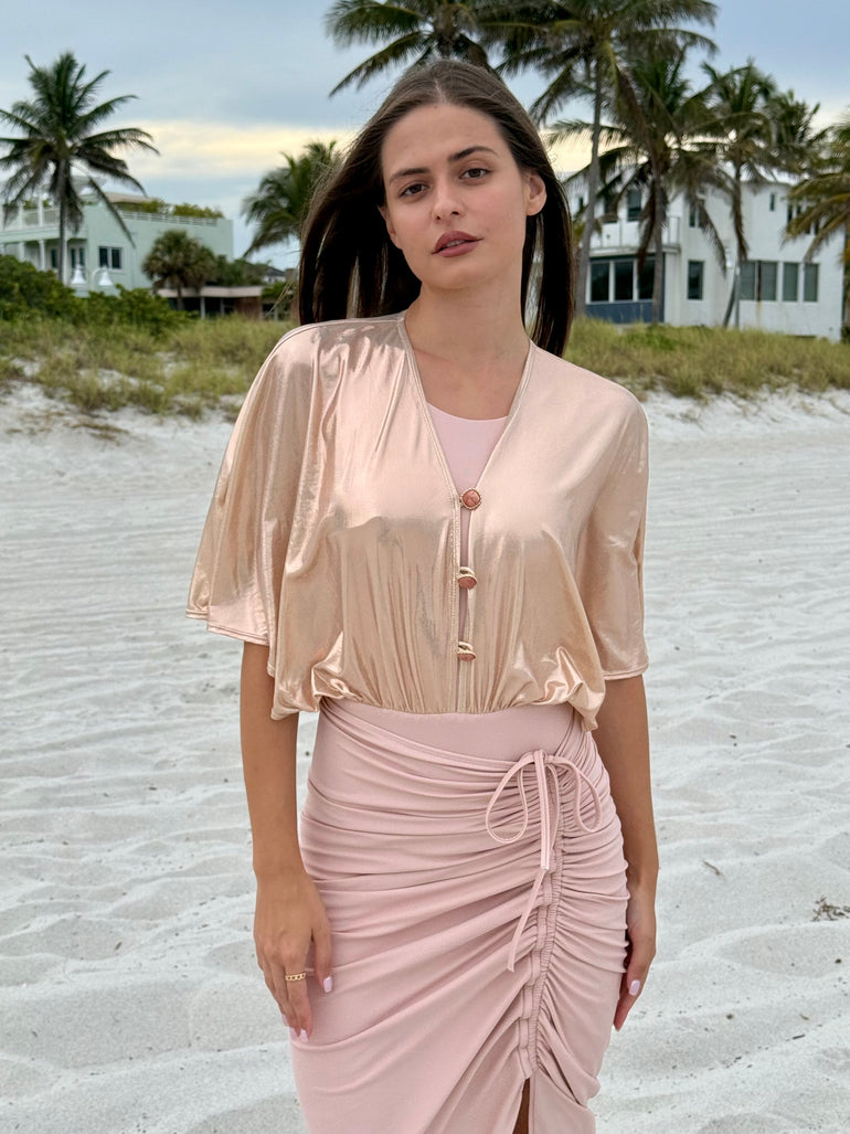 Make a statement with the Paloma Set—our most sophisticated and elegant two-piece outfit yet. This elevated modest set features a luminous bodysuit with a soft, cape-style overlay that flows like ocean breeze. Complete with a built-in bra and custom designer button details, the Paloma is designed for both comfort and quiet luxury.
