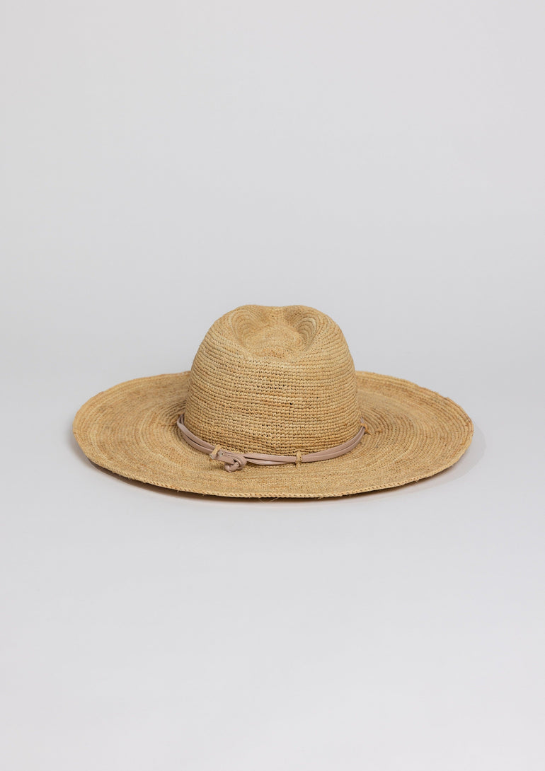 This textured continental hat is a staple for your summer hat collection! Crocheted raffia hat is trimmed in a PU leather detail and has an adjustable sweatband for the perfect fit.