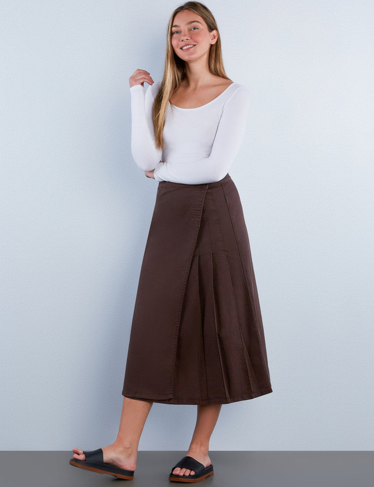 The Delphine Side Pleat Maxi Skirt just exudes cuteness, with its adorable side-pleat construction and oh-so-soft premium denim.