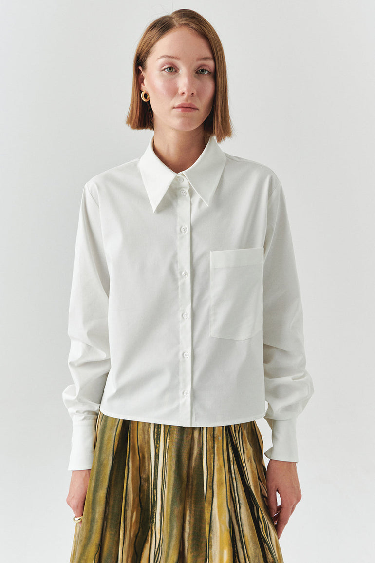 Theodora Structured Pocket Shirt with Classic Collar and Long Sleeves