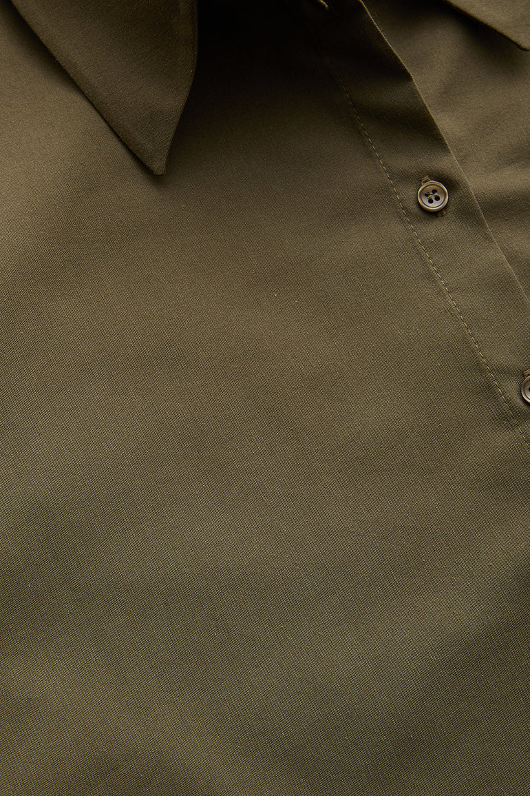 The Khaki version of the Theodora Shirt offers the same refined silhouette in a rich, earthy tone. Clean lines and subtle stretch add to its appeal.