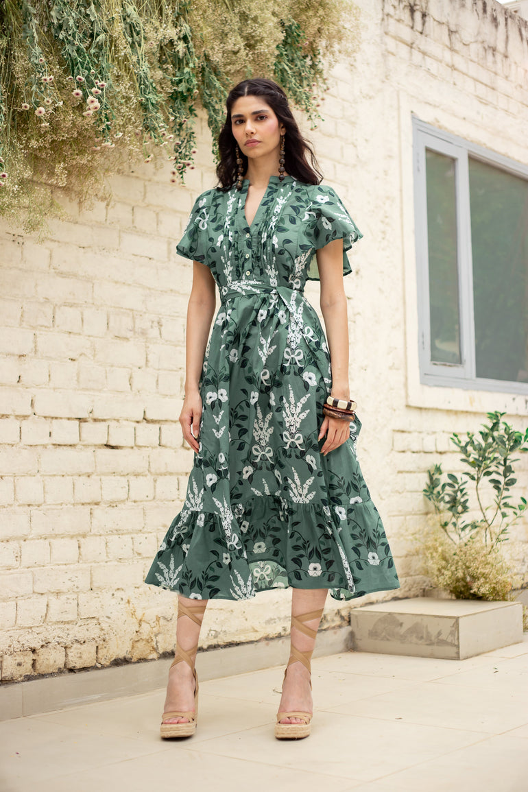 The Leni dress is a true ode to femininity. The universally flattering loose cut is accentuated by subtle pleats and a ruffled hem, while the featured belt cinches in at the waist for a truly enchanting silhouette. Leni is made from a soft, breathable cotton cambric fabric. This print design captures the serene beauty of Provence's endless poppy and lavender fields, where the air is filled with the soothing scent of spring.