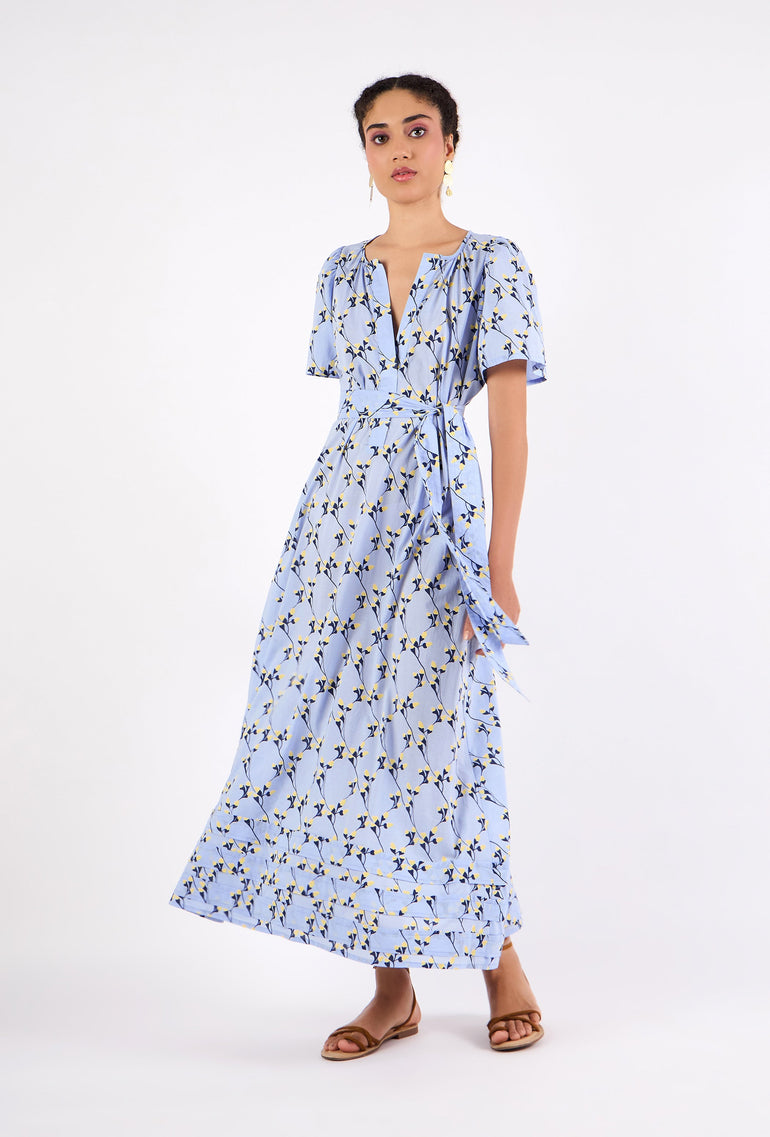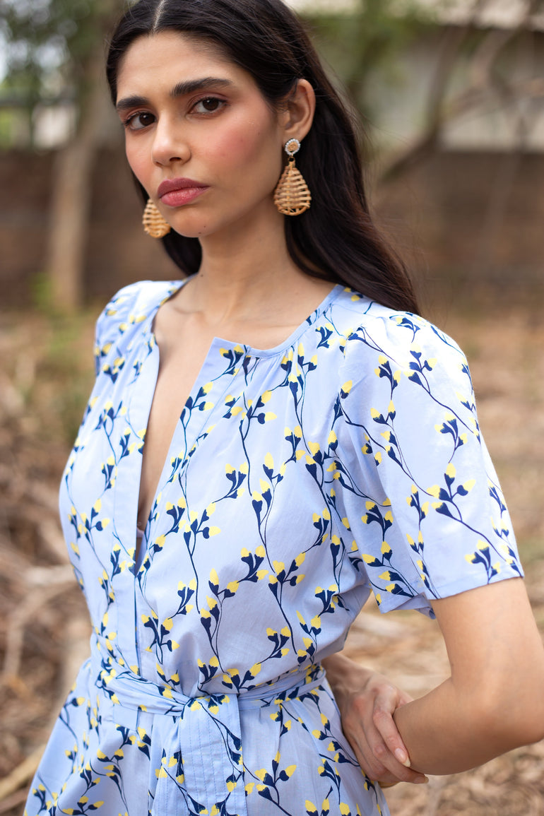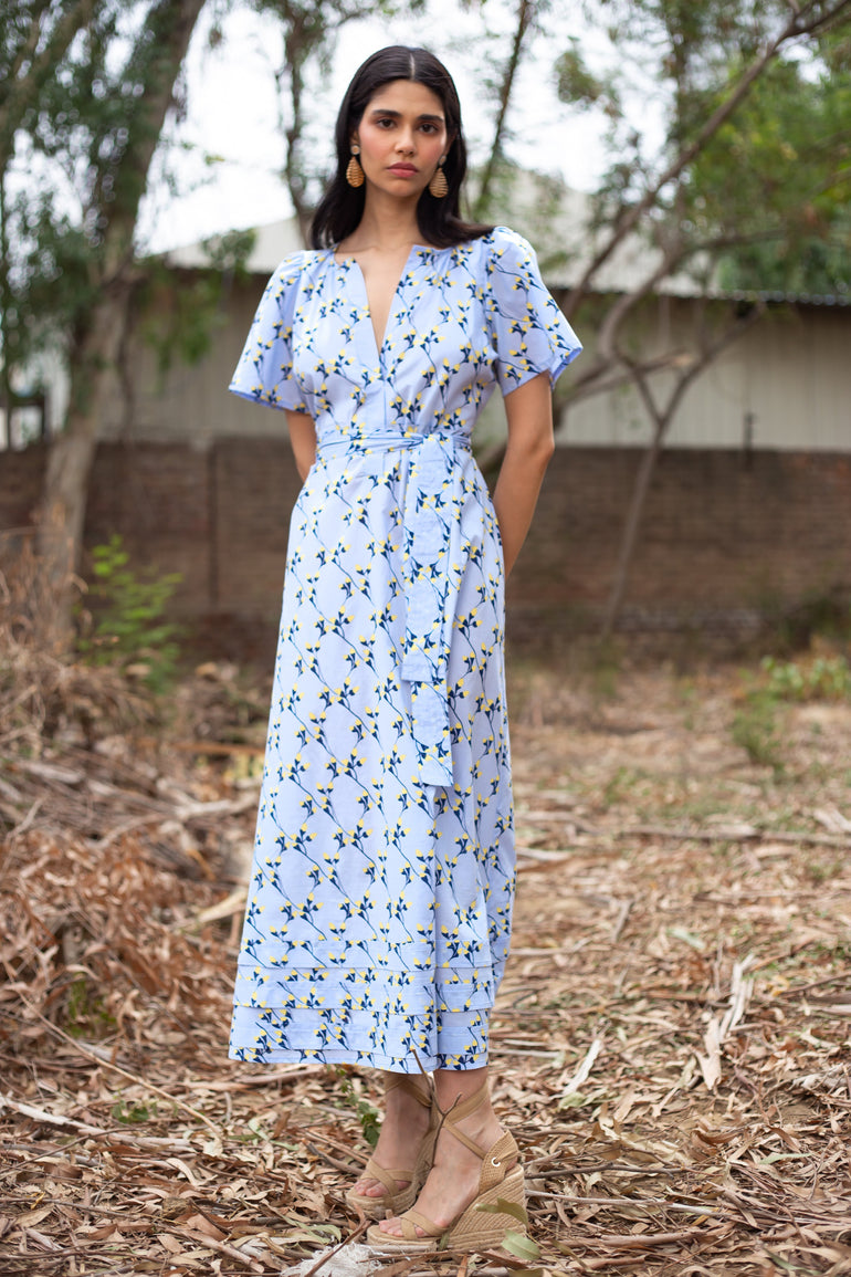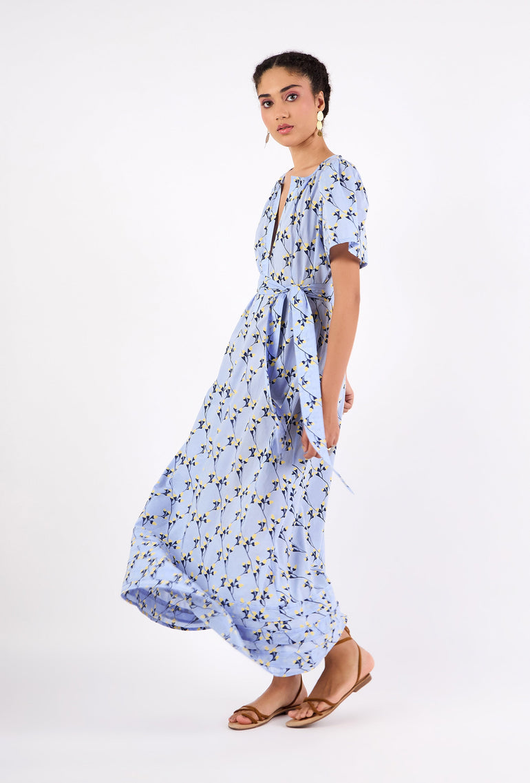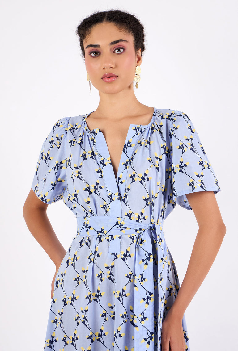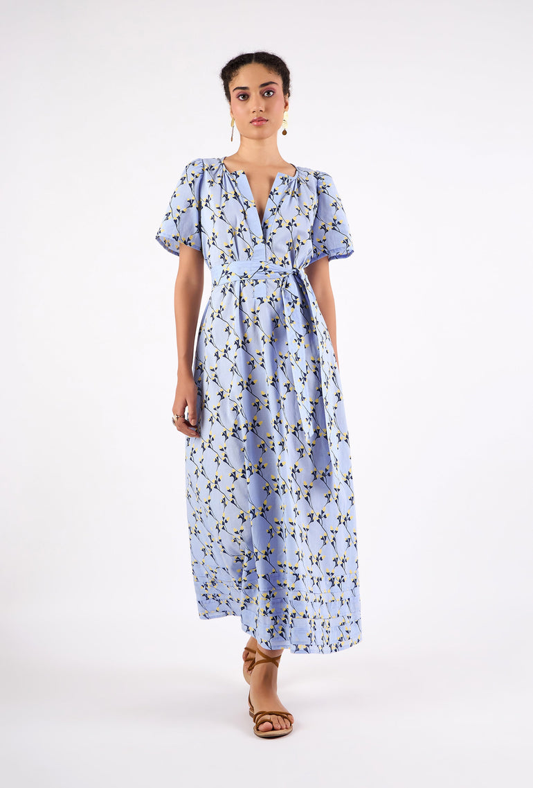 Meet Suzi, a versatile new silhouette designed to flatter all body types. The pullover midi dress boasts an adjustable V-neckline, semi-puff, straight sleeves and A-line skirt with pin-tucked details. The relaxed waist can be cinched with the included belt, making it an ideal dress to elevate your everyday style. Suzi is made from a soft, breathable cotton cambric fabric. Inspired by the wildflowers blooming in spring around the medieval village of Gordes, Provence, this print references the idyllic scenery of the blooming landscape.