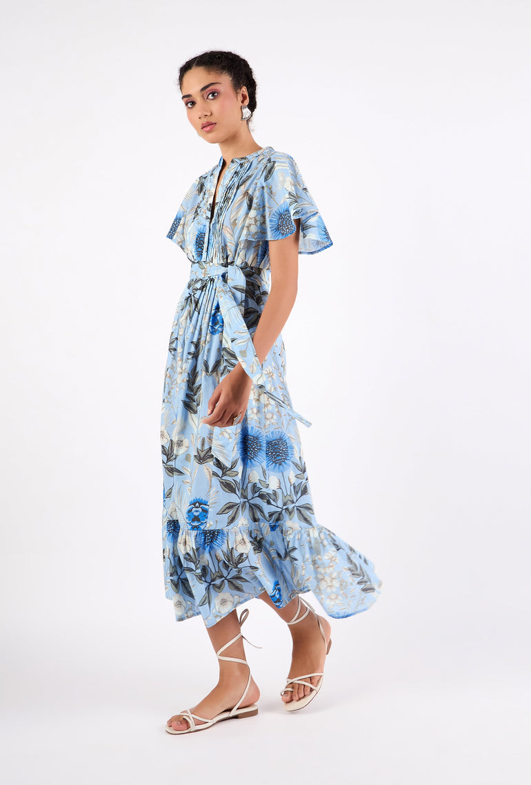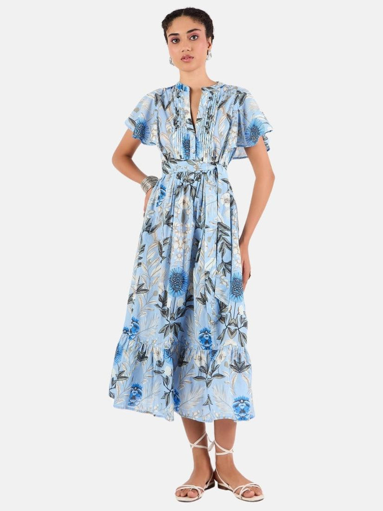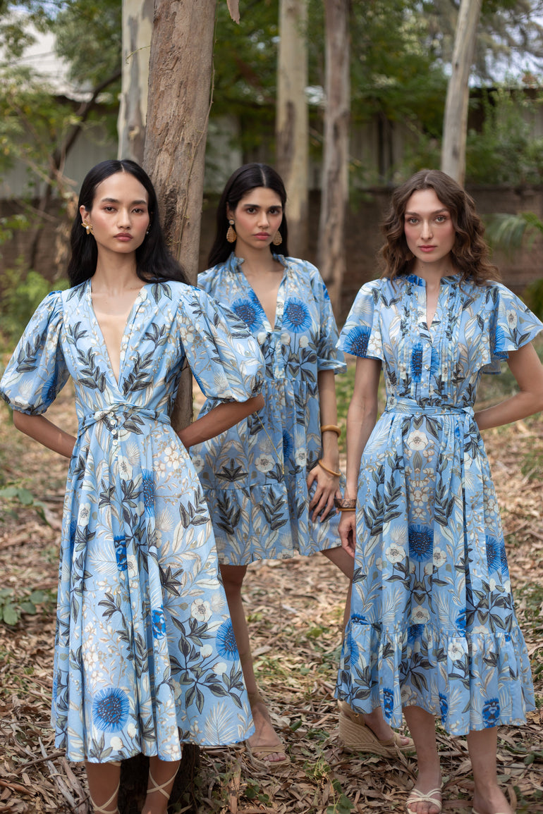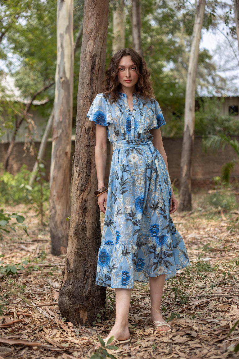 The Leni dress is a true ode to femininity. The universally flattering loose cut is accentuat- ed by subtle pleats and a ruffled hem, while the featured belt cinches in at the waist for a truly enchanting silhouette. Leni is made from a soft, breathable cotton cambric fabric. This print captures the enchanting beauty of Claude Monet's garden in Normandy, famously depicted in the paintings of the renowned French painter.
