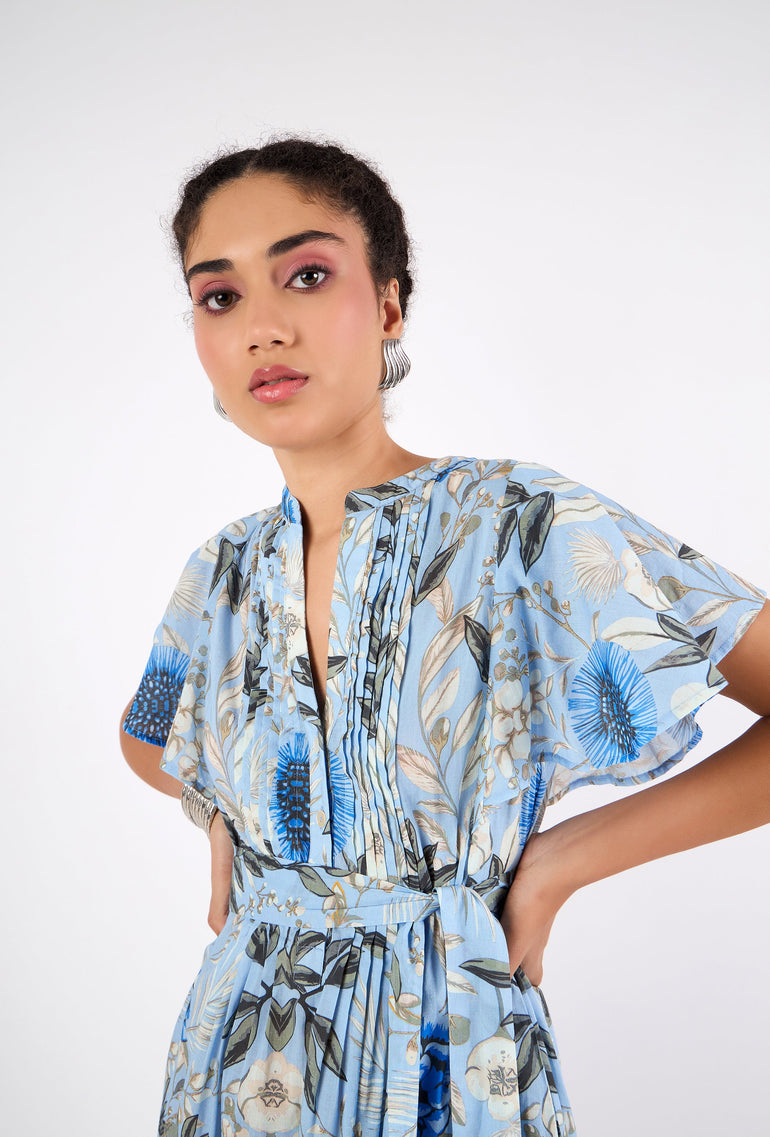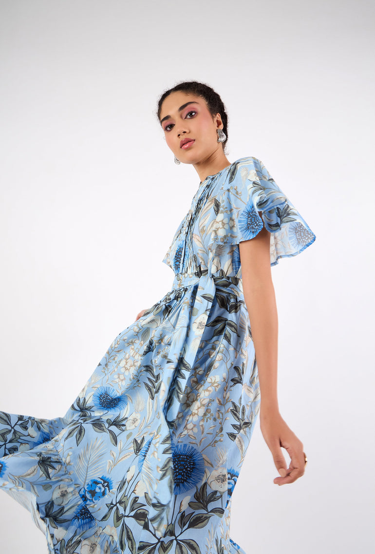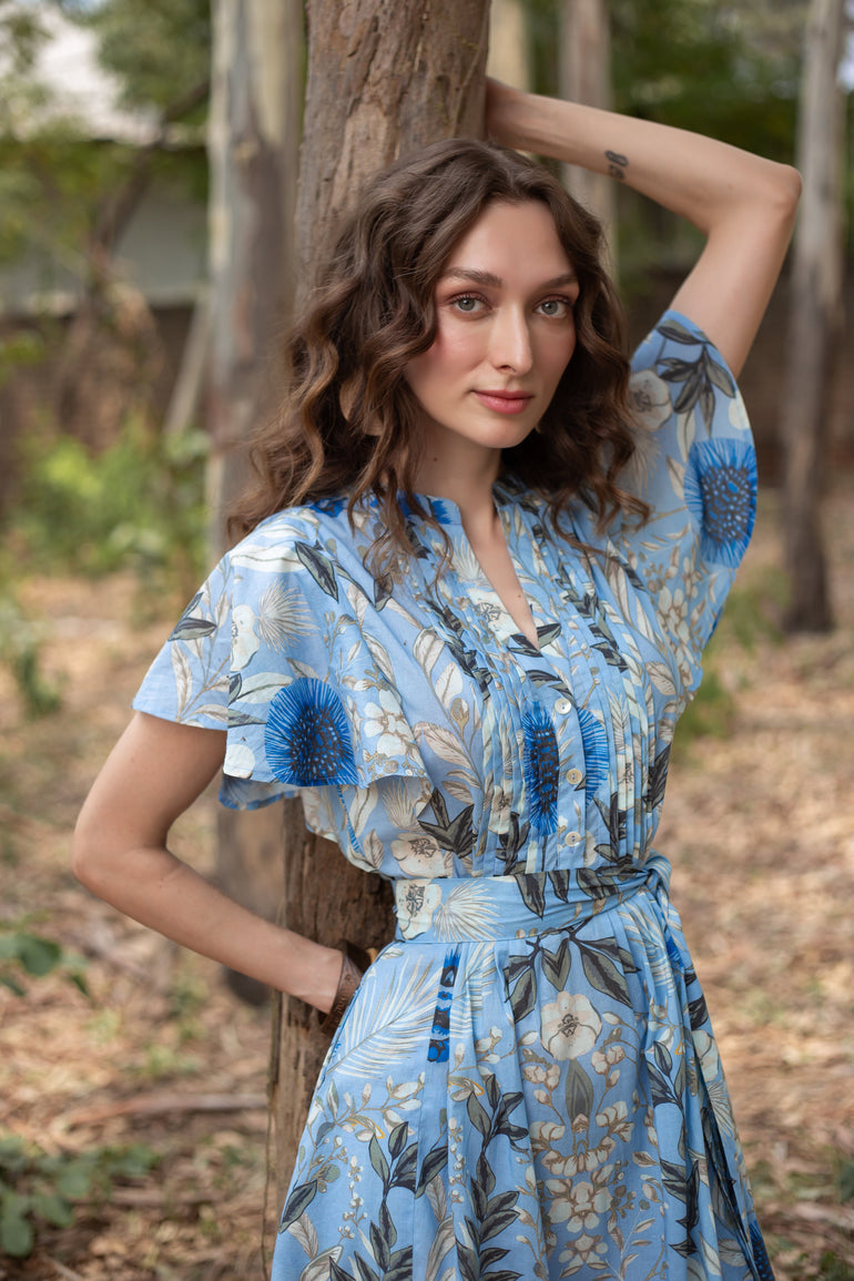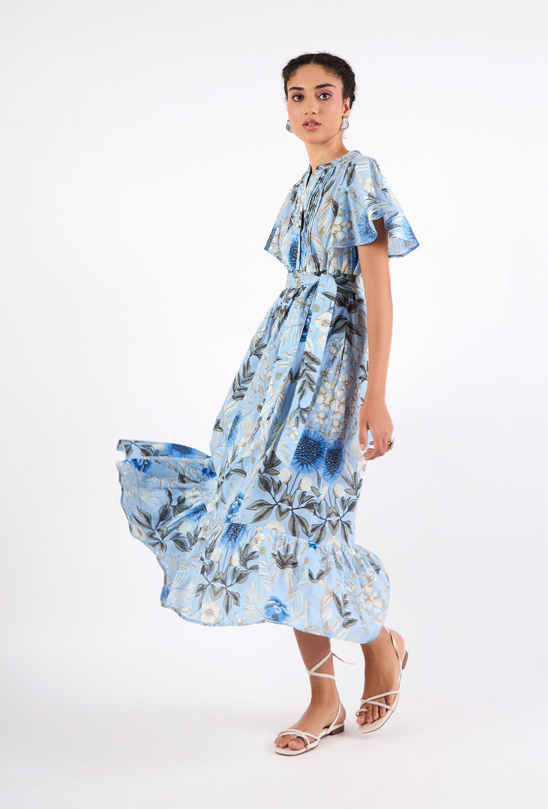 The Leni dress is a true ode to femininity. The universally flattering loose cut is accentuat- ed by subtle pleats and a ruffled hem, while the featured belt cinches in at the waist for a truly enchanting silhouette. Leni is made from a soft, breathable cotton cambric fabric. This print captures the enchanting beauty of Claude Monet's garden in Normandy, famously depicted in the paintings of the renowned French painter.