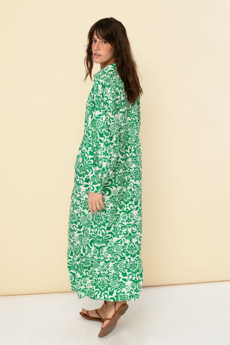 Printed midi shirt dress, made of cotton viscose slub which gives the perfect fluidity to the dress