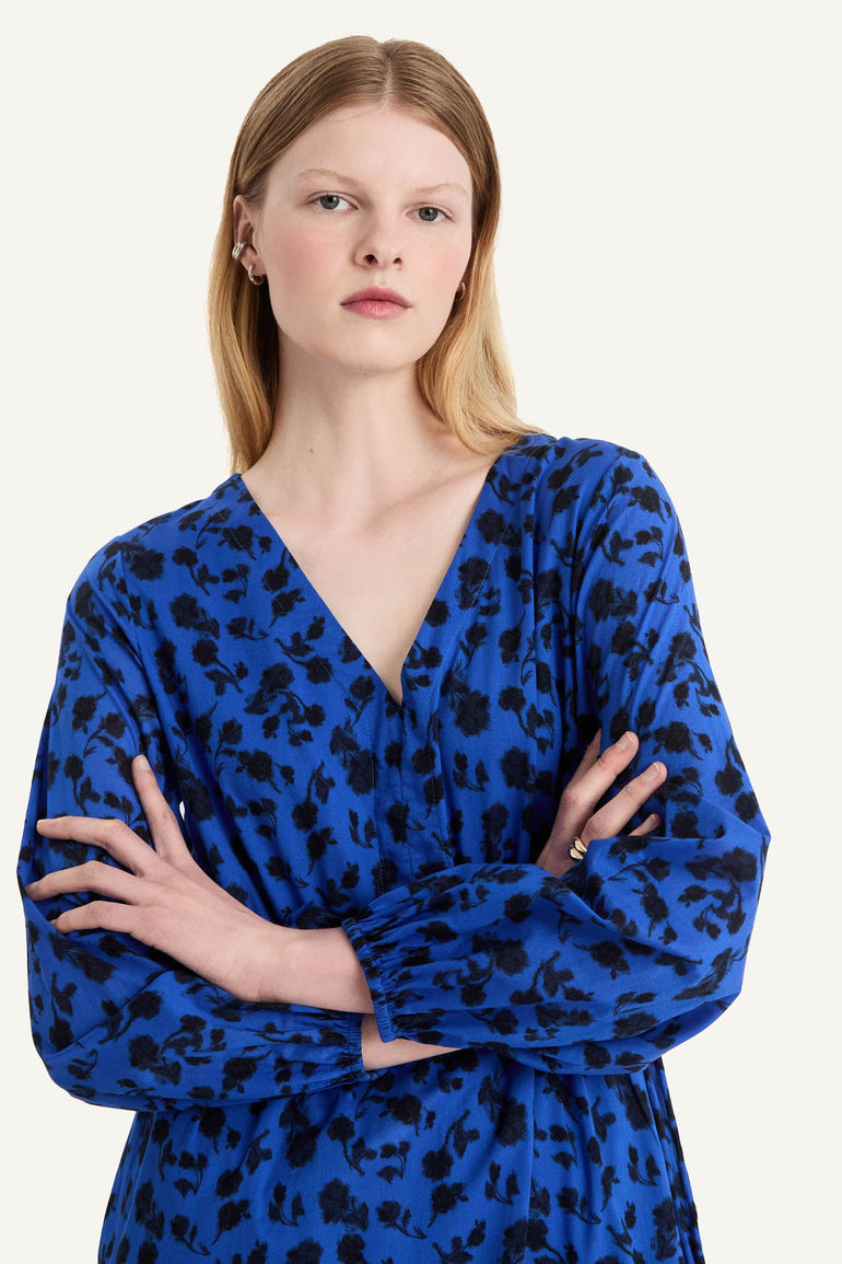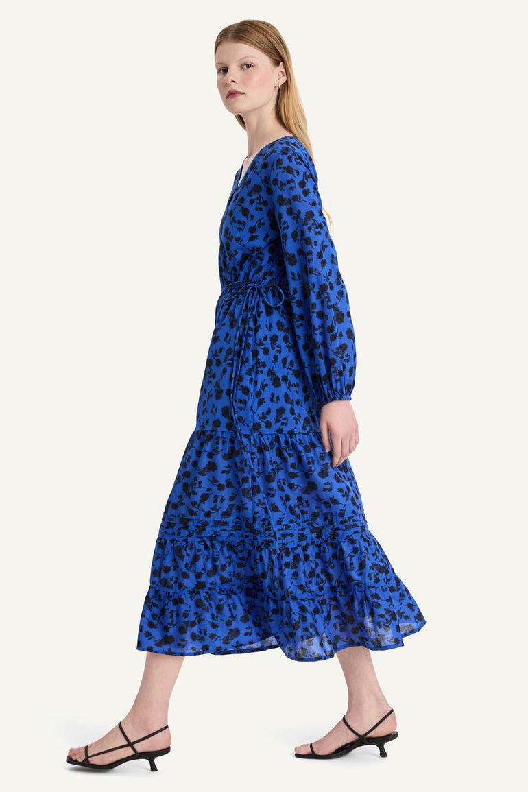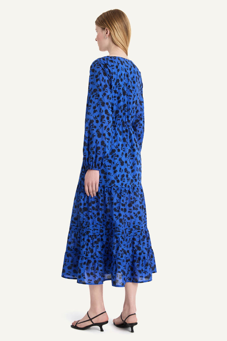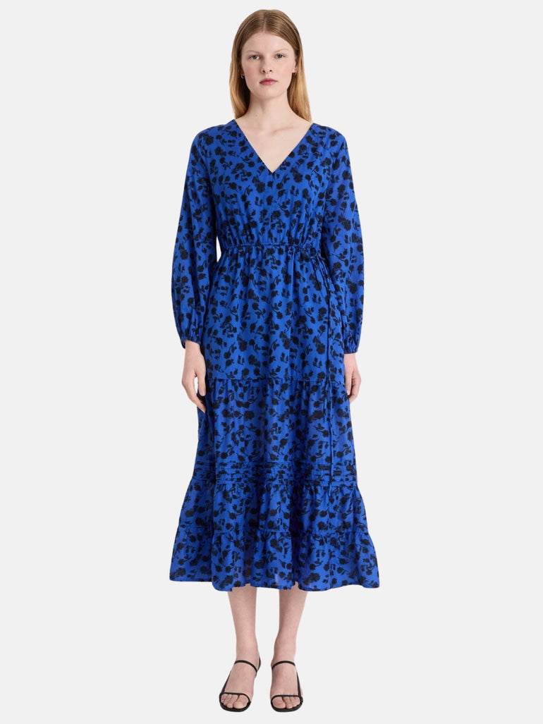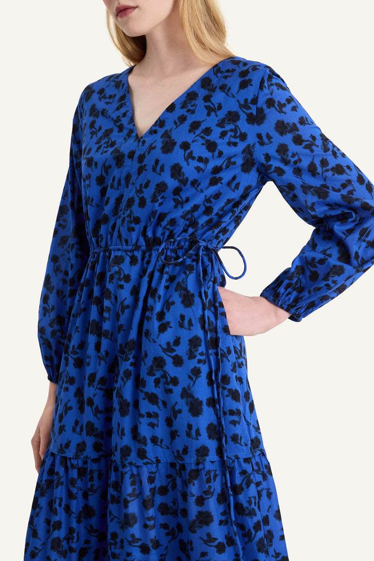 Embrace effortless elegance with the EZE Dress. Crafted from 100% cotton voile, this ankle-length style features a digital floral print that lends an artistic touch. Gathered pintuck tiers create a romantic, tiered silhouette, while a v-neckline and leg slit offer a subtly alluring quality. Long sleeves with elastic cuffs and an adjustable drawcord waist provide a customizable fit, and side pockets add a practical touch. Fully lined for coverage, this dress epitomizes relaxed sophistication—simply push up the sleeves and go for a more casual look.