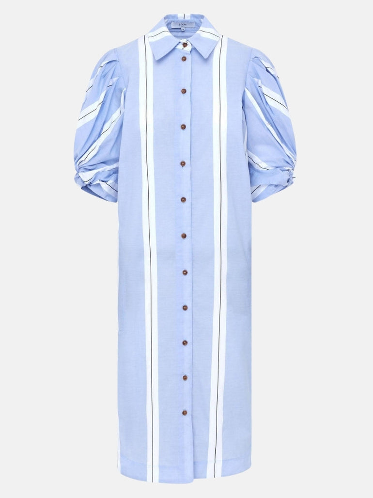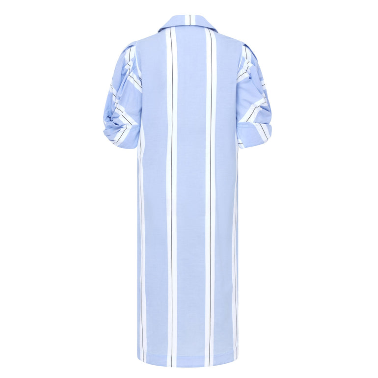 Ines Knot Sleeve Shirt Dress White & Blue Stripe