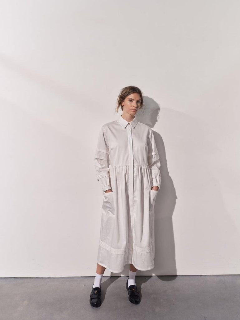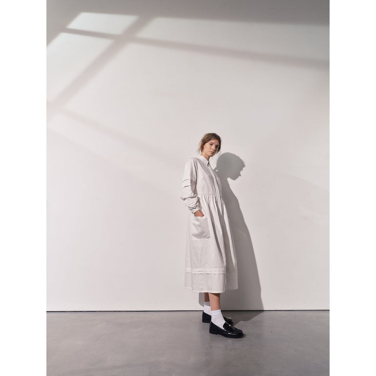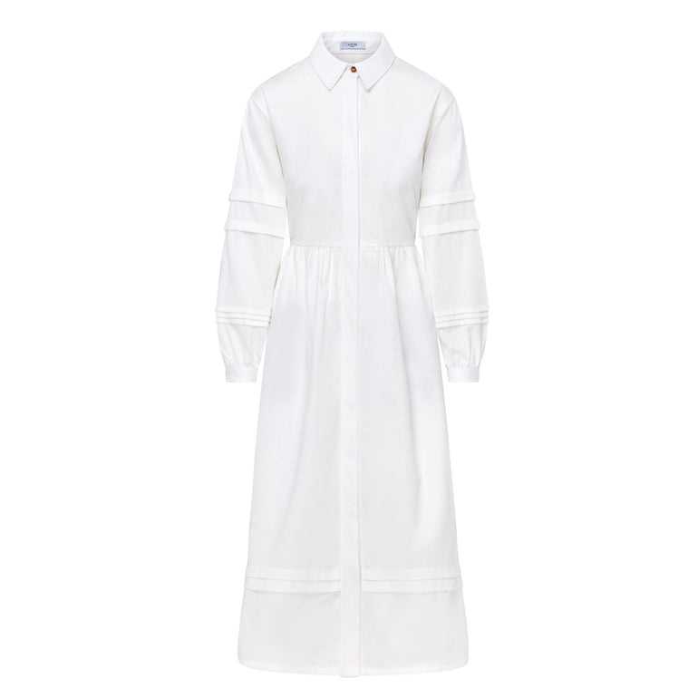 Isla Pleat Detail White Shirt Dress