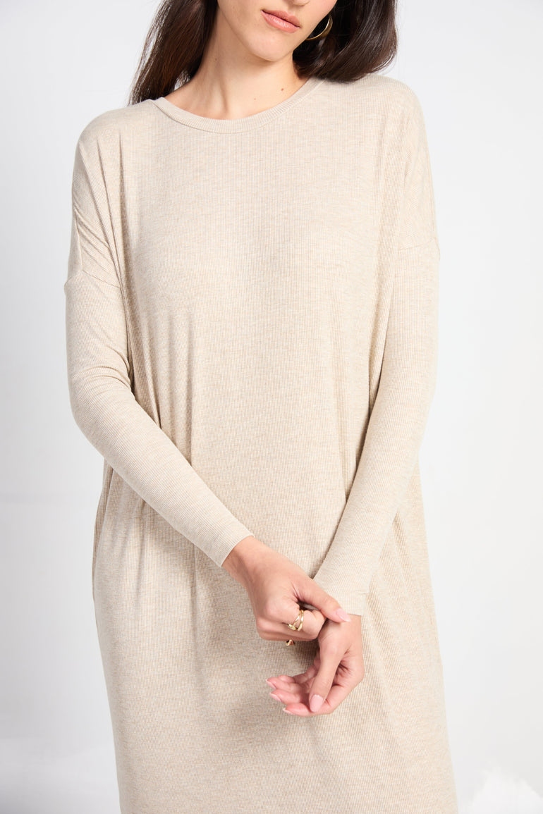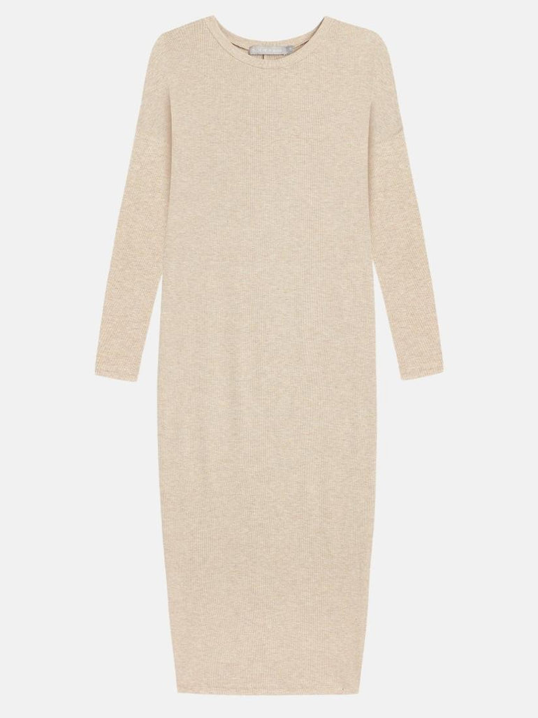 Jaden Ribbed Midi Dress in Beige