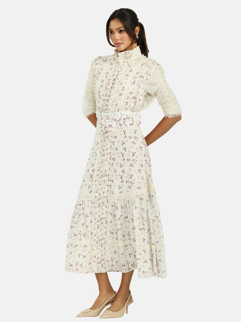 Add a touch of romance to your wardrobe with the Lilac Petal Belted Midi Dress. Featuring a sophisticated high neckline and delicate lace detailing, this dress creates a refined yet feminine look. The matching belt cinches the waist, while the soft lilac color and midi length offer a perfect balance of elegance and comfort.