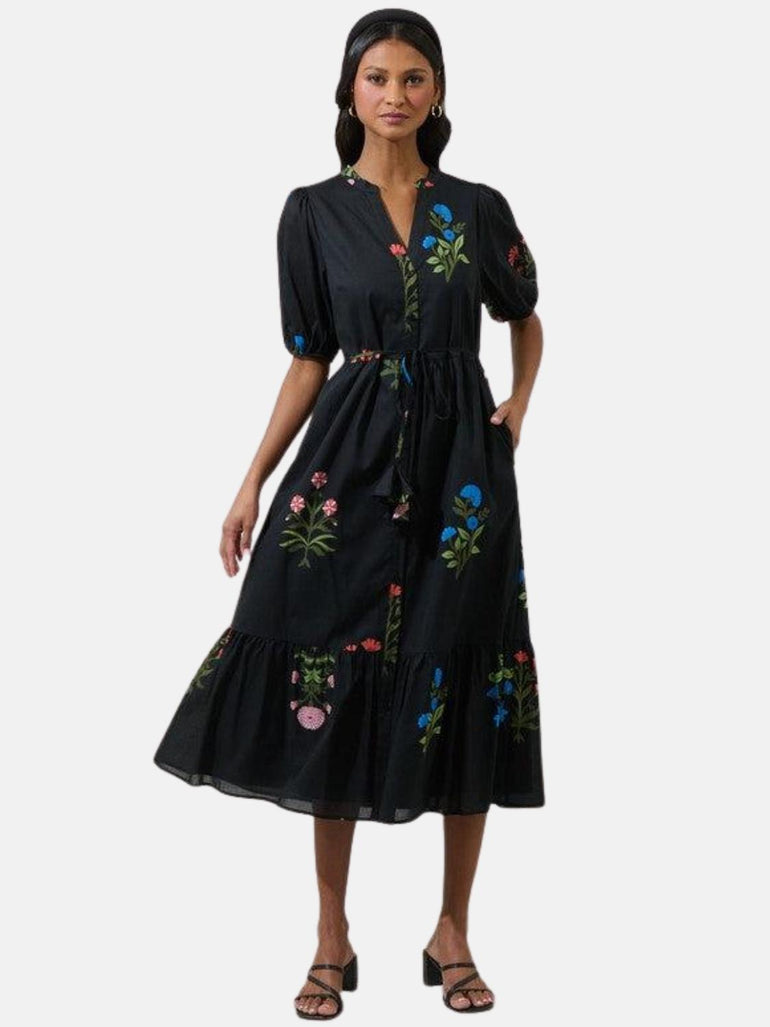 Feminine and timeless, this Floral Button-Down Midi Dress is your go-to for elevated everyday dressing. Featuring an allover floral print and a classic button-down front, this dress balances effortless charm with thoughtful tailoring. A lined waistbelt cinches the silhouette for a flattering fit, while the midi length keeps it versatile for brunches, workdays, or weekend events. Style it with sandals for daytime ease or heels for a polished look.