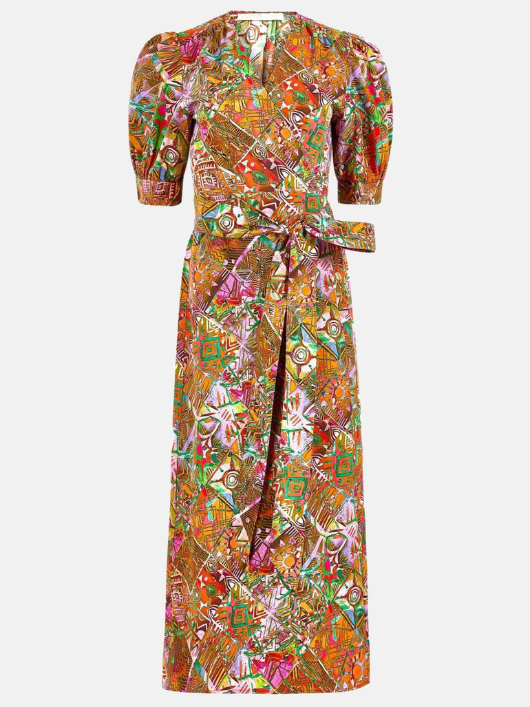 Rita Puff Sleeve Wrap Dress in Multicolor