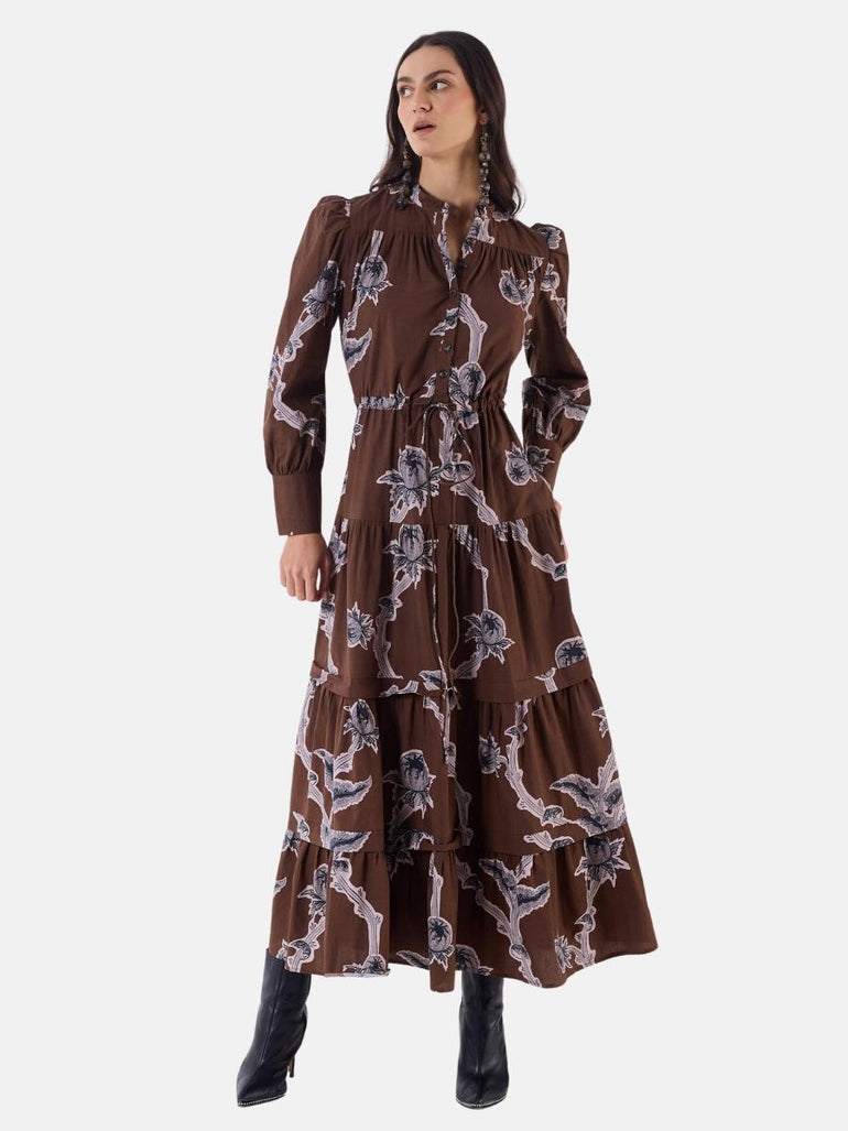 1151 Sissi Tiered A Line Shirt Dress in Brown