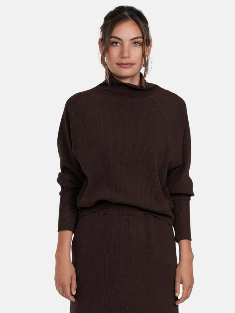 - Designed with a relaxed mock neckline and subtly draped silhouette, it's the perfect balance of cozy and polished.