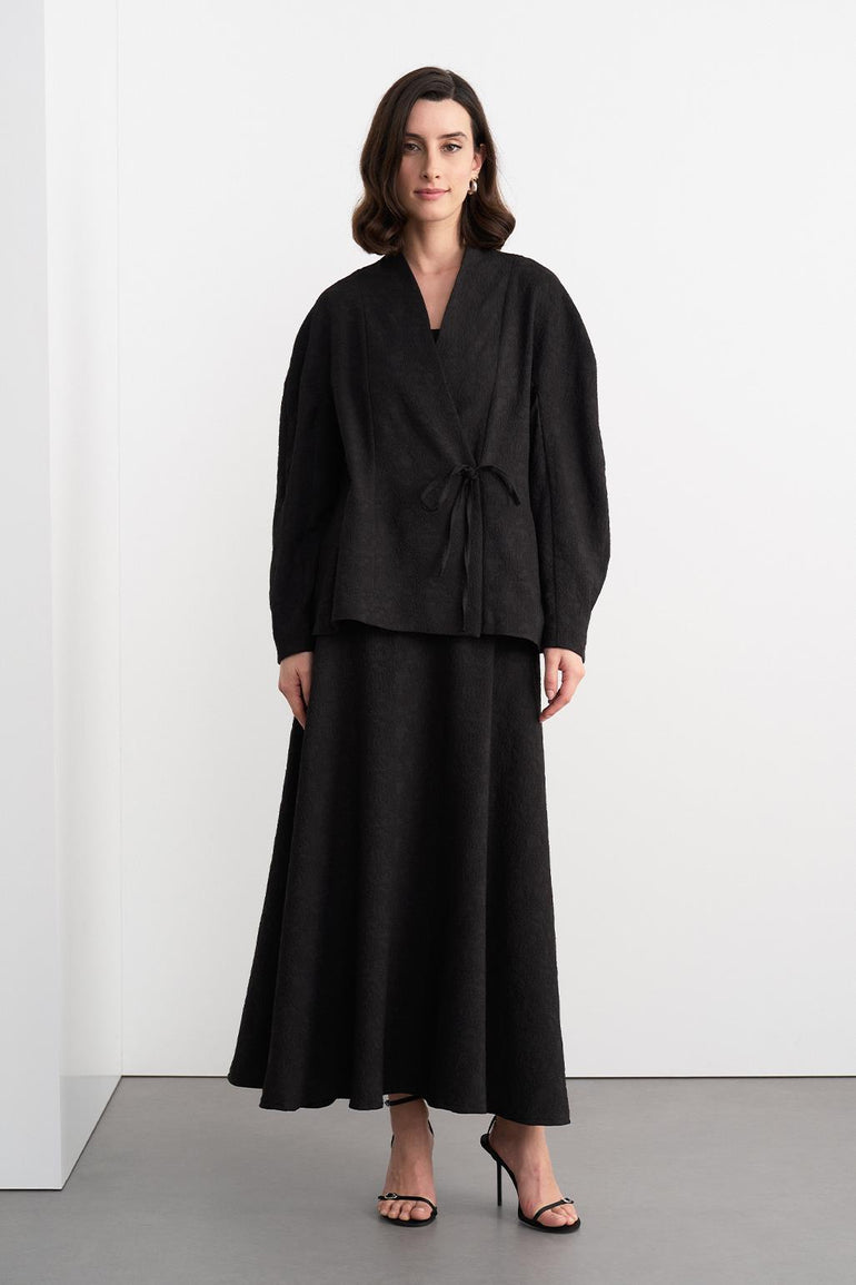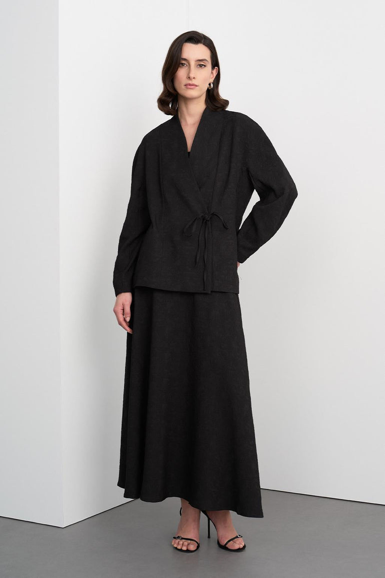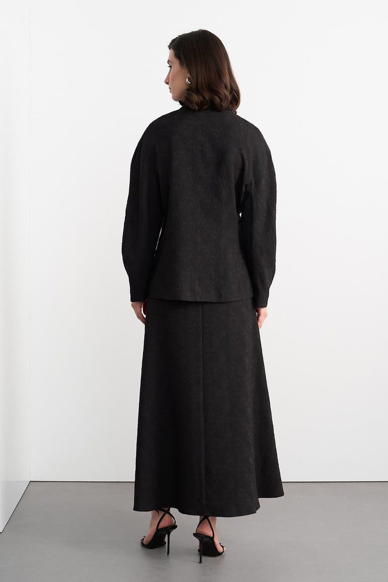 Ari Textured Jacket Skirt Set Black