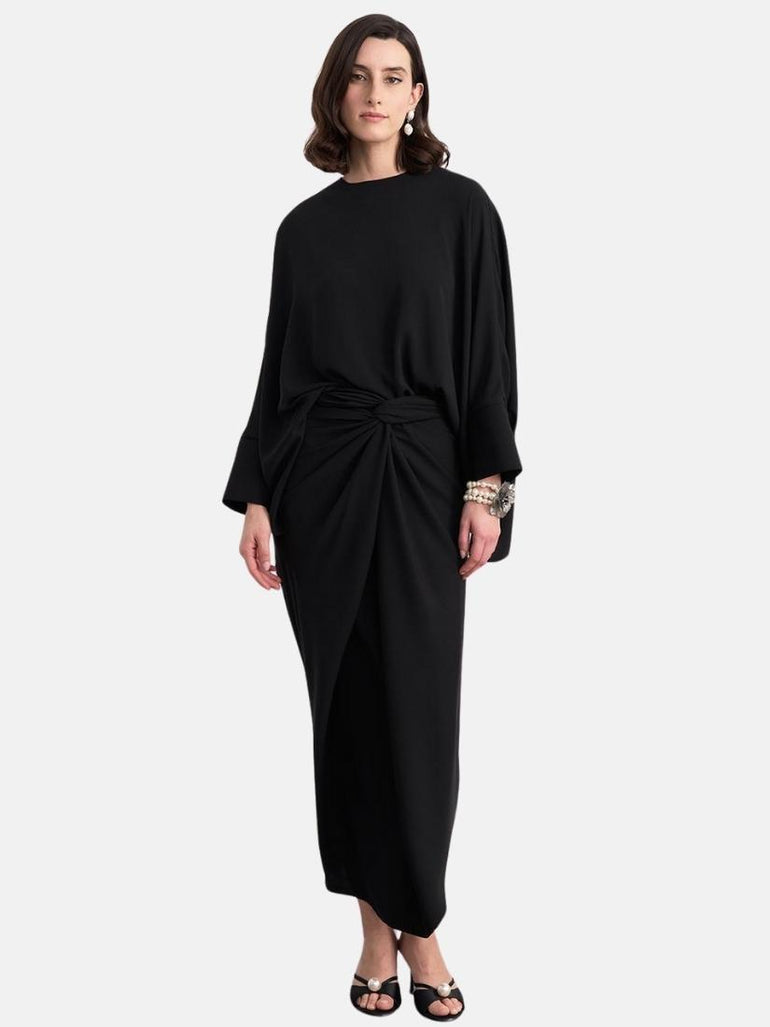 The Doha Tunic Wrap Skirt Set adds a unique touch to your style with its light texture and modern cut. The tunic's elegant slit detail and the wrap skirt's dynamic design guarantee sophistication for any occasion, from special events to everyday outfits. You can pair the tunic with wide-leg trousers for a casual look, or transform the skirt into a sophisticated style with a basic blouse, a bag, and gold accessories. This set, offering various combination options with each piece, adds both functionality and elegance to your wardrobe!