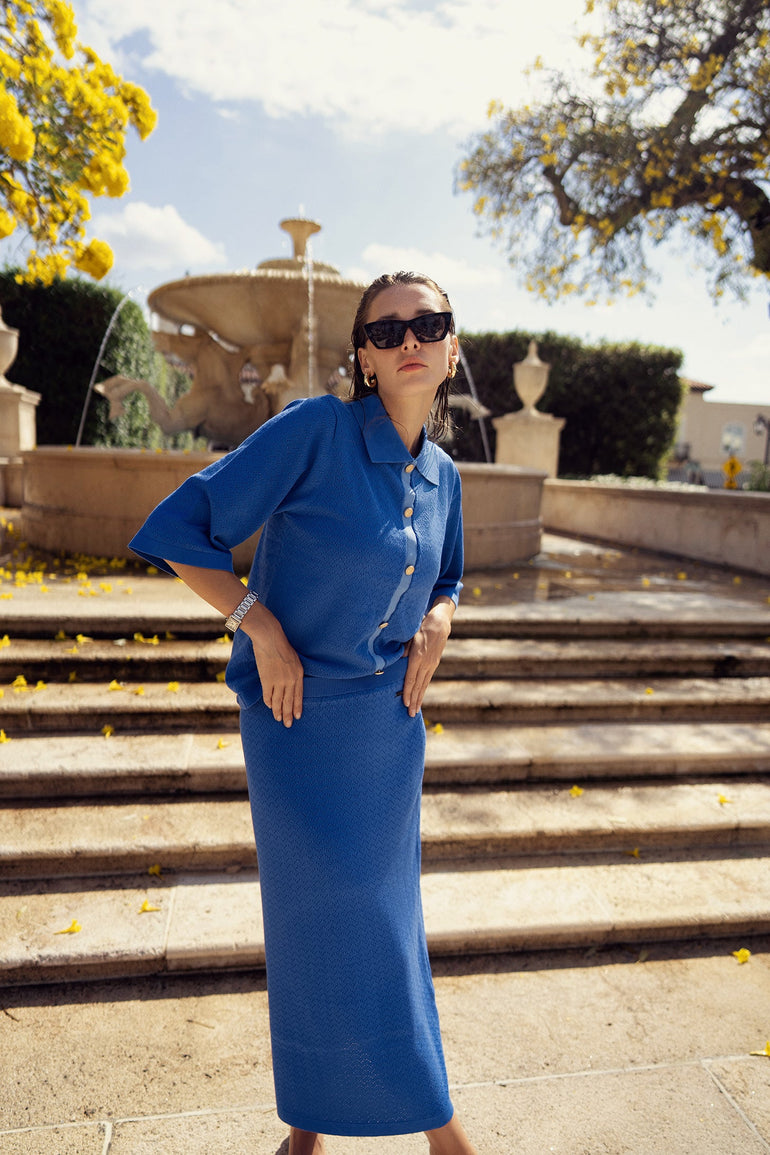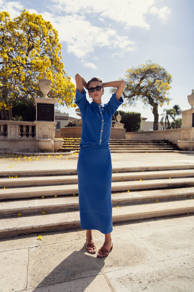 This chic and comfortable eyelet knit polo is the perfect addition to your summer wardrobe. Crafted from a light and airy knit material, it's both stylish and comfortable, making it the perfect option for warm weather. Elevate your summer style with this must-have piece.
