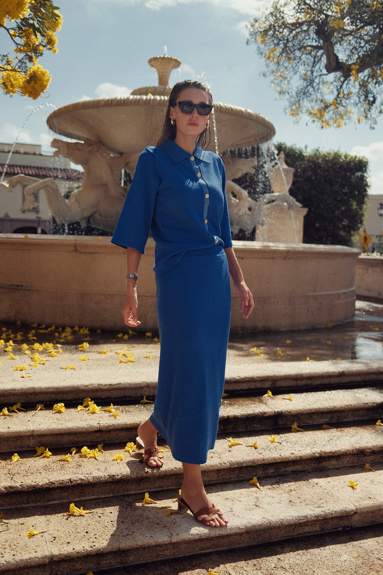 The EYELET KNIT SKIRT offers a chic and comfortable option for your wardrobe. Made from a lightweight and airy knit, this skirt is perfect for any occasion. Stay stylish and comfortable without compromise.