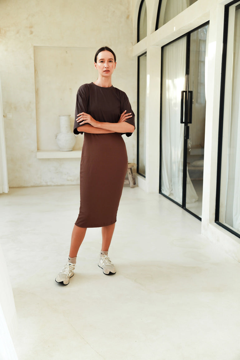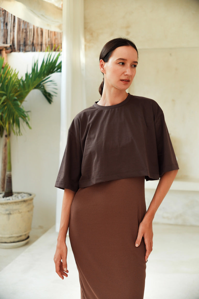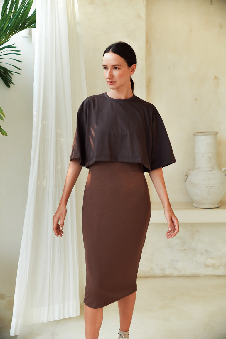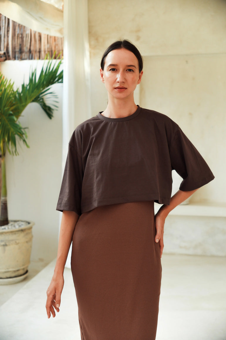 The Jia set comes with a midi dress and a separate cropped tee and an ANAVA PARIS tote bag.