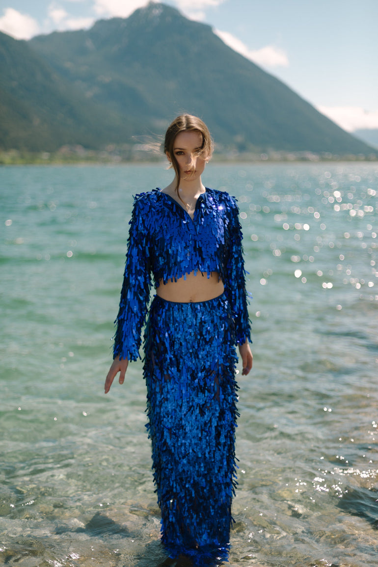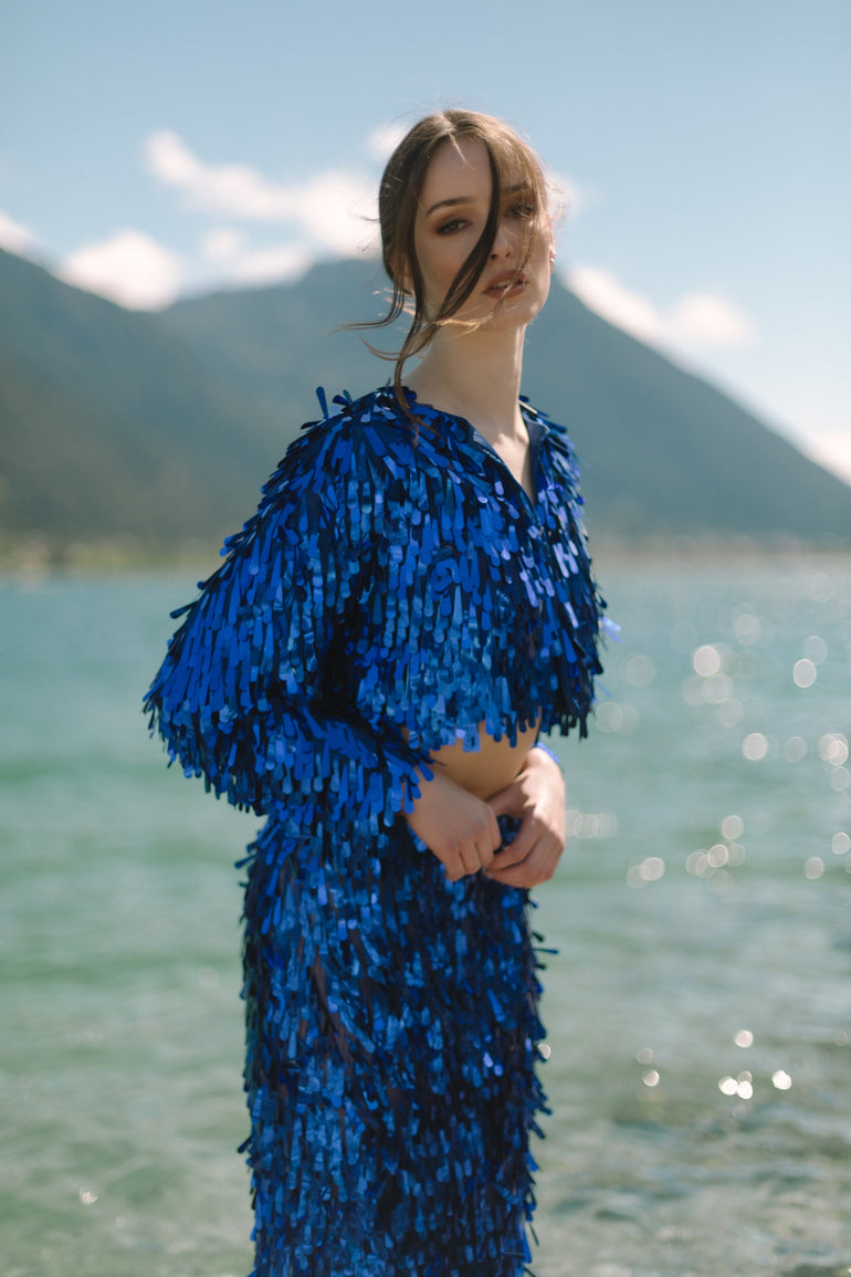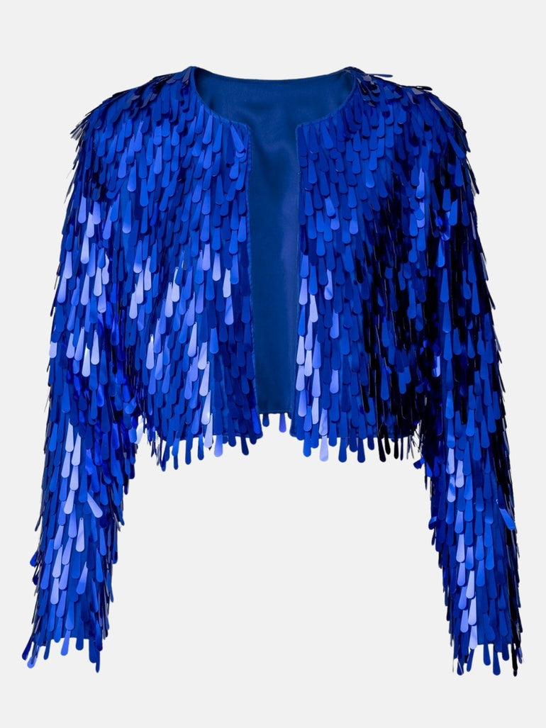 Cropped Tear Sequin Royal Blue Jacket