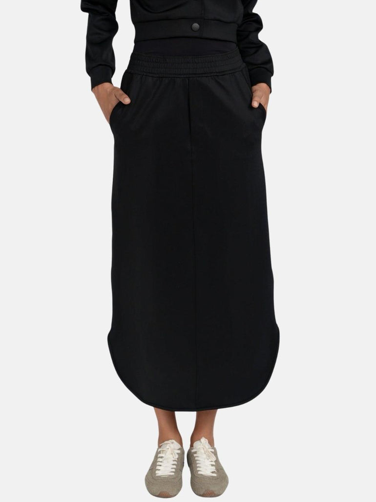 The Lottie Skirt is a sleek, straight silhouette crafted from structured scuba fabric, combining polished style with comfortable wear. Featuring an elastic waistband, it provides effortless fit and ease while maintaining a clean, modern line. Designed to pair perfectly with the Raven Bomber, this skirt is an elevated essential for chic everyday errands or casual city styling.