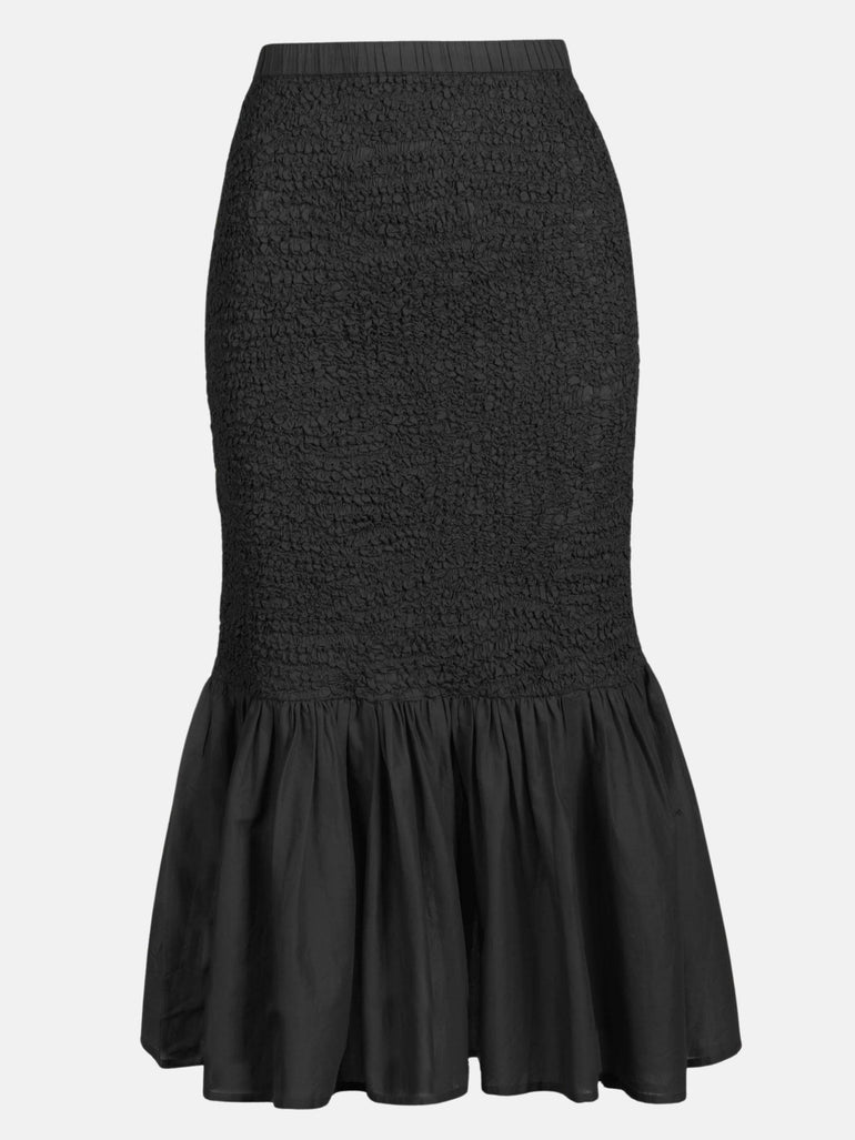 The MIYU Skirt embodies a poetic interplay of texture and form. This skirt combines structure and fluidity with its detailed elastic bubble smocking that extends through the fitted silhouette. Falling to a graceful midi length, it is finished with a ruffled hem that lends a playful sense of motion to the piece. Designed with a ruched elastic waistband, the MIYU offers a flattering, secure fit while maintaining ease of movement.