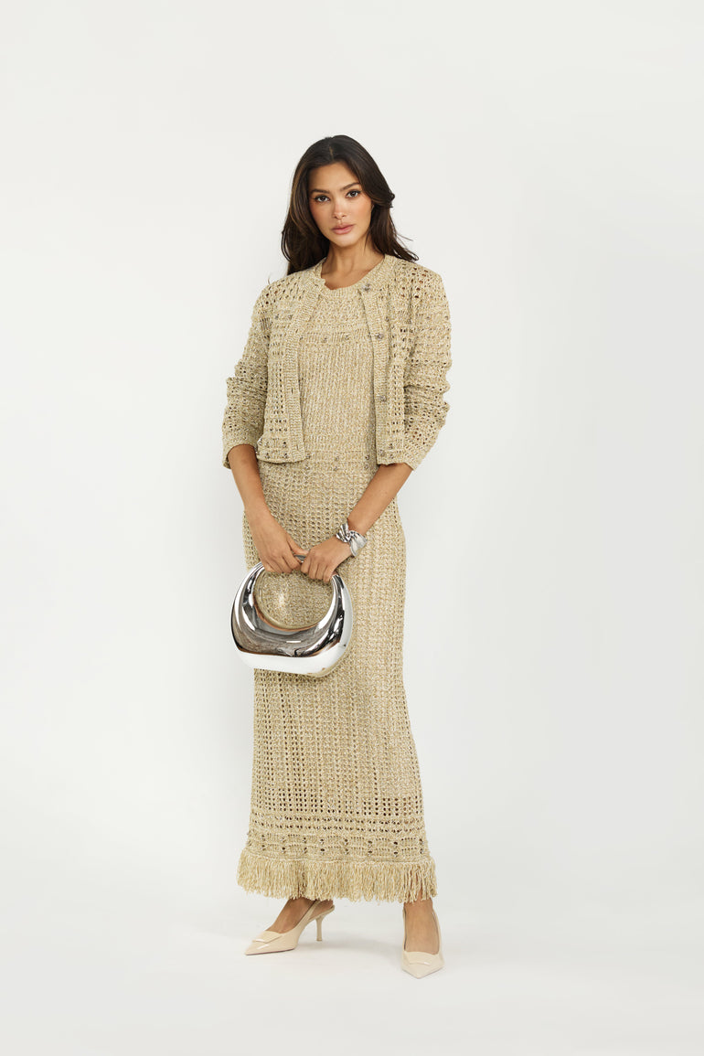 Shimmer Knit Dress & Cardigan in Gold Hue