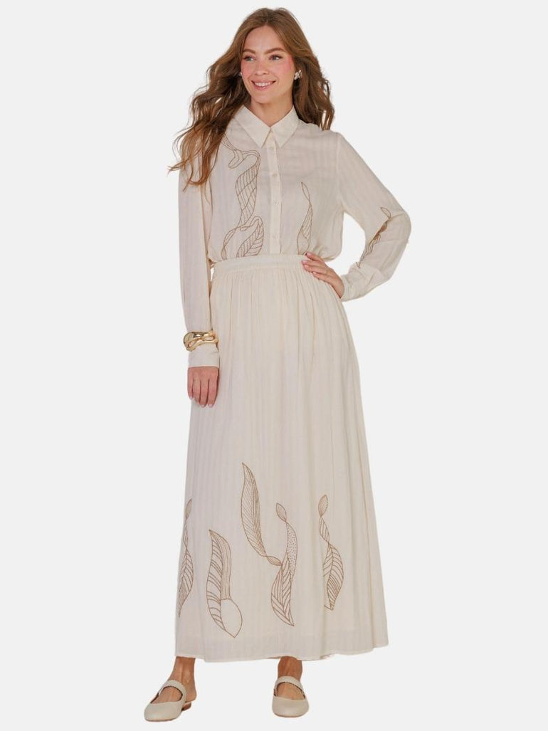 This stunning 2 piece outfit is sold as a set! The blouse and skirt come together. Made out of beautiful fabric with hand sewn beading .