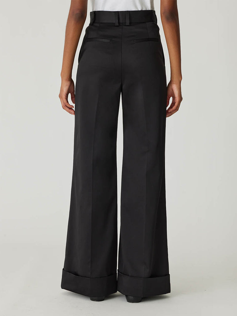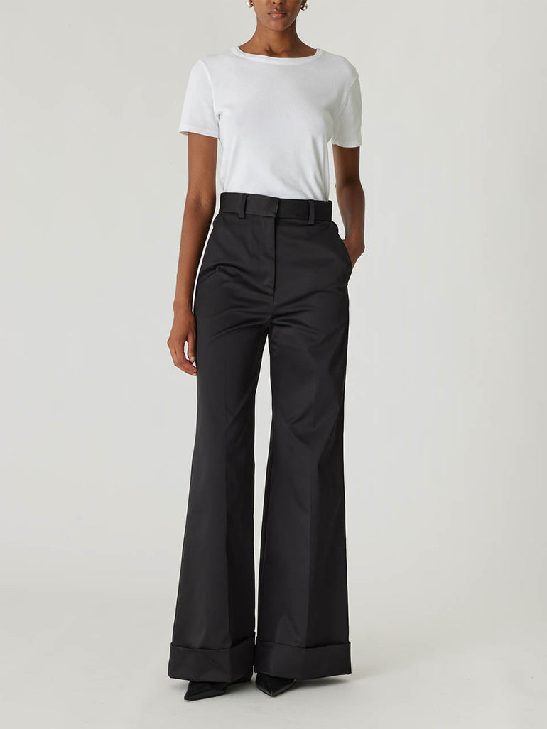 These pants feature a modern wide-leg silhouette and a sophisticated sheen, perfect for adding a touch of elegance to any look. Ideal for both professional settings and chic evenings out.