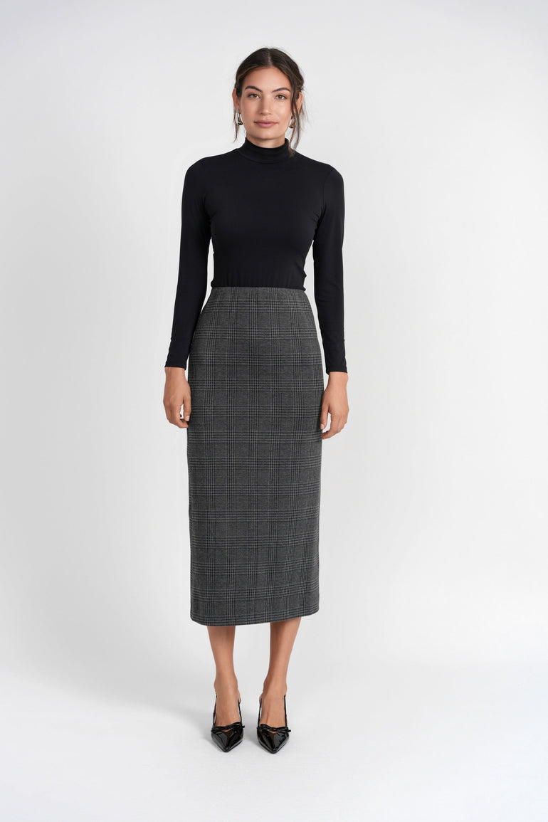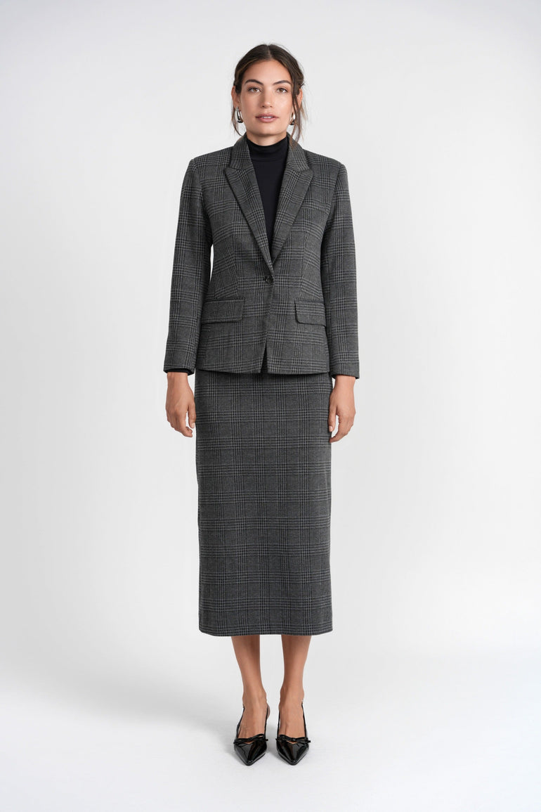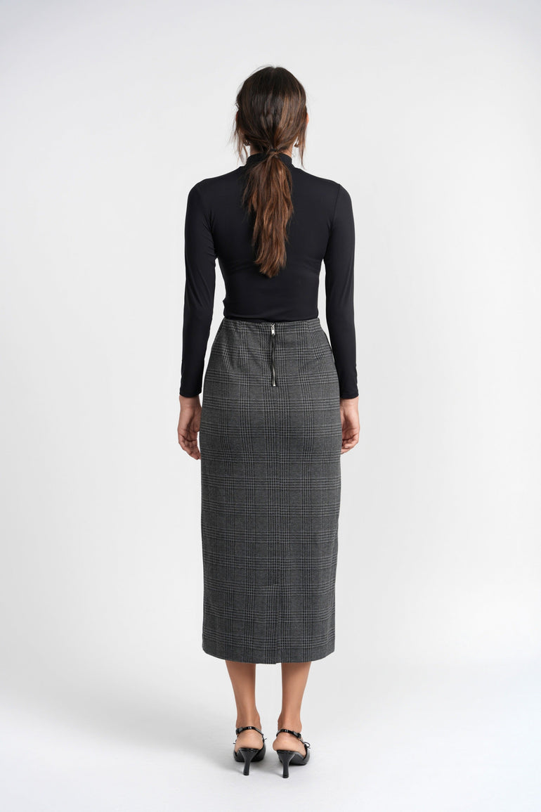 - The Valerie Skirt is crafted from a refined houndstooth suiting fabric, designed in a sleek maxi silhouette that balances structure with fluidity.