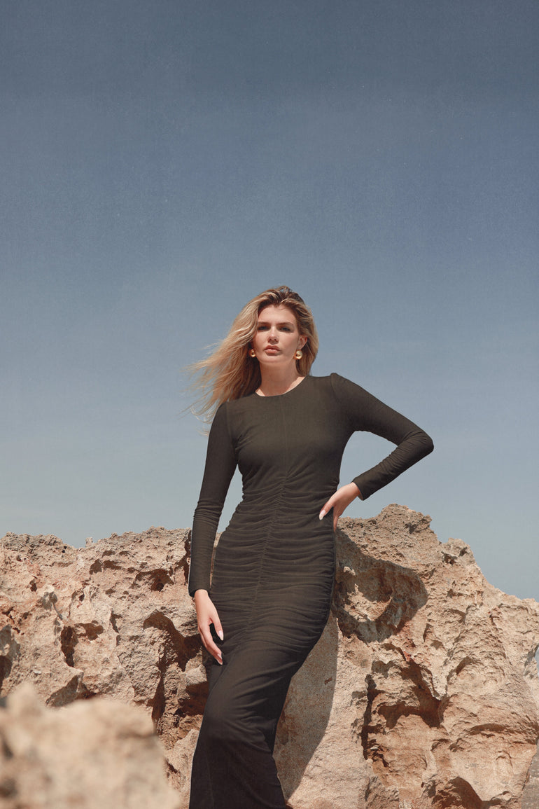 The Mesh Center Front Ruched Dress is the ultimate dream dress. It flatters all body types, providing both comfort and style. A crowd favorite, its mesh ruched design exudes luxury and sophistication. Perfect for making a statement at any event.