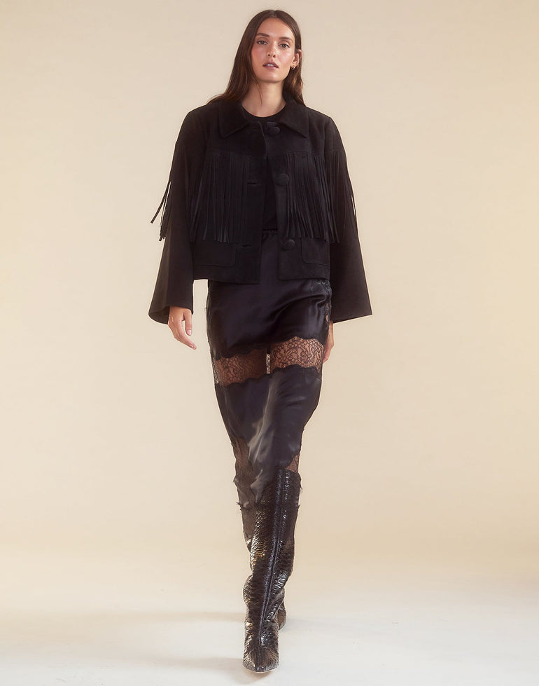 Fringe suede jacket in black
