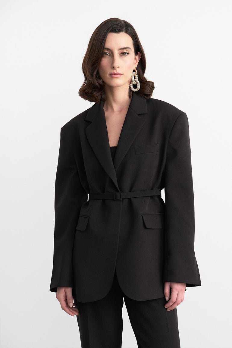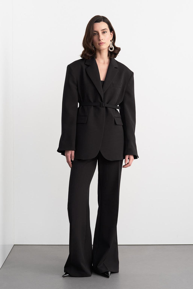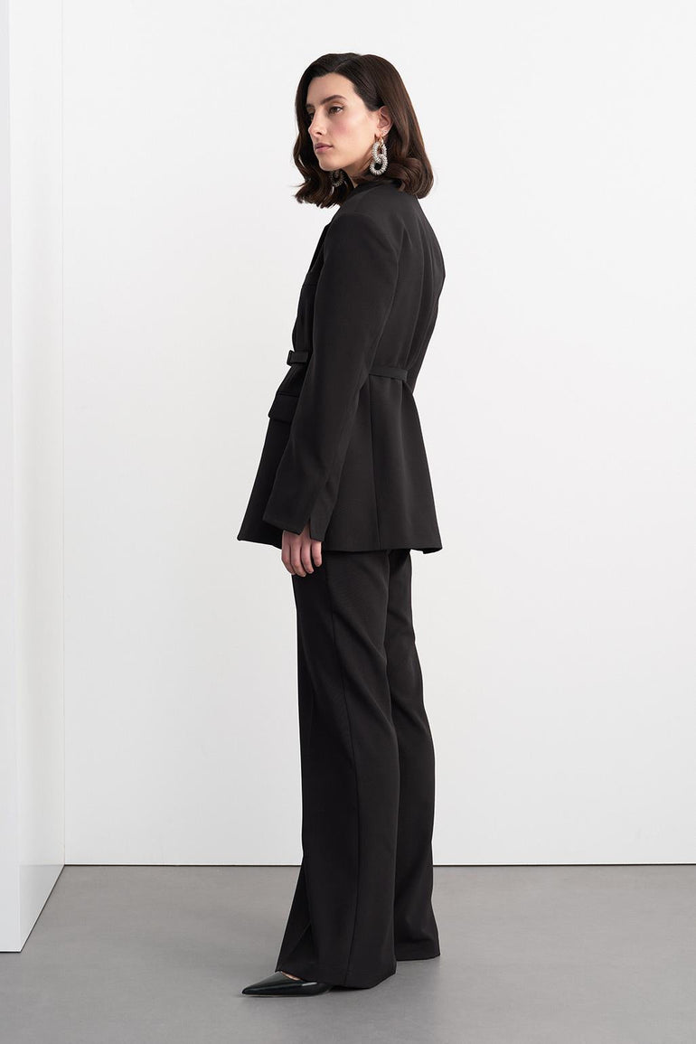 The Fit Cut Padded Jacket Suit Set is made from a cotton-blend double fabric, offering an elegant look with its lined structure and flap pockets. The folding collar and hidden button closure complete the design, making it an ideal choice for both business and special occasion outfits.