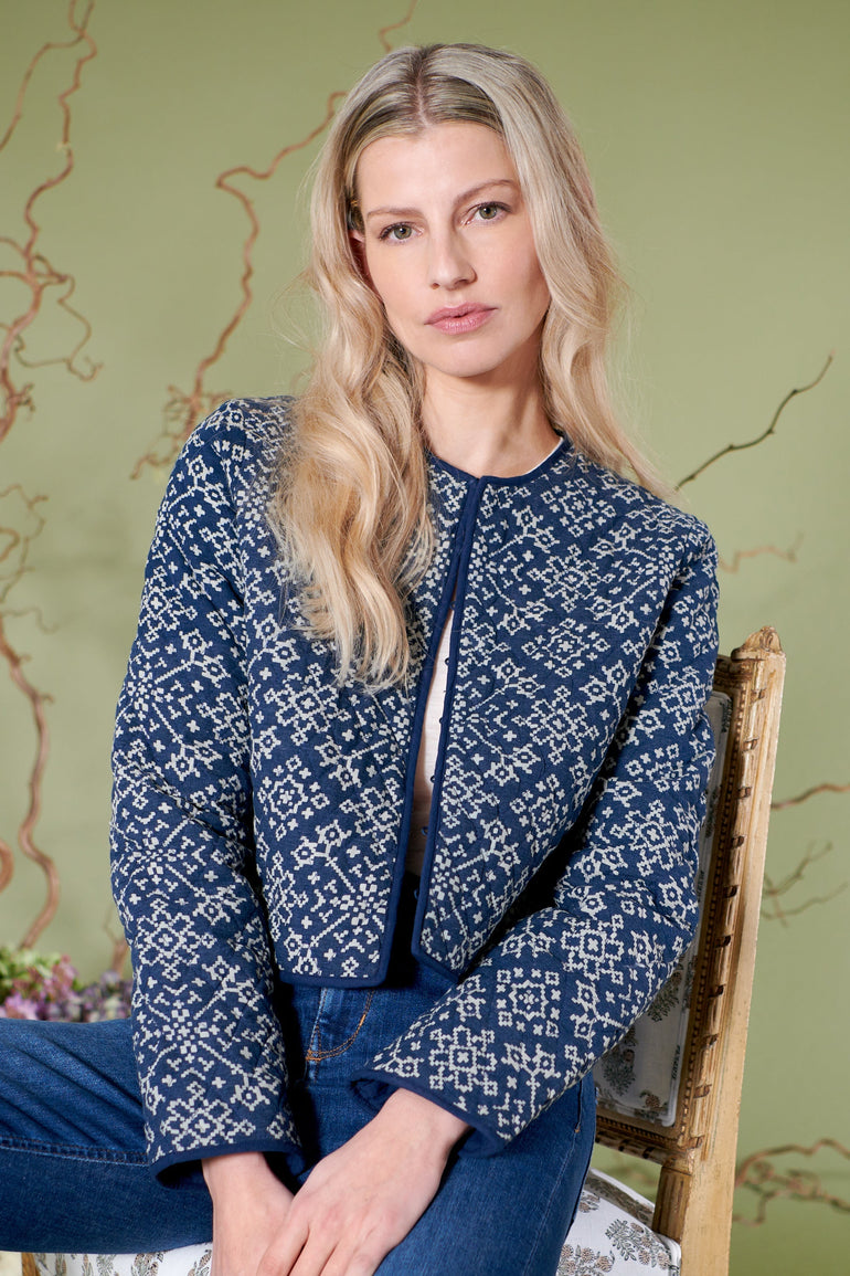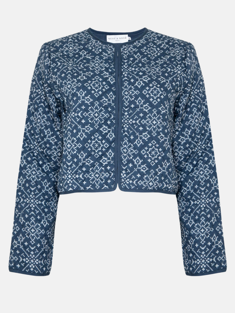 Our simplistic quilted jacket is the perfect replacement to the standard knits, it is light and easy and breathable so you won't get too hot indoors. Wear a simple merino long sleeve top or t-shirt underneath teamed up with a skirt or jeans.