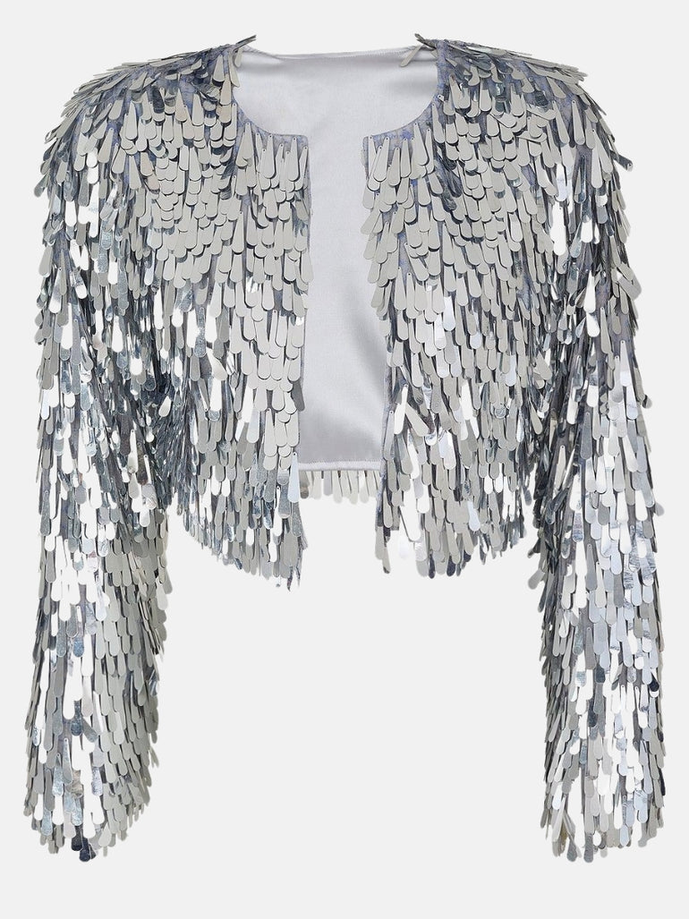 Cropped Tear Sequin Silver Jacket
