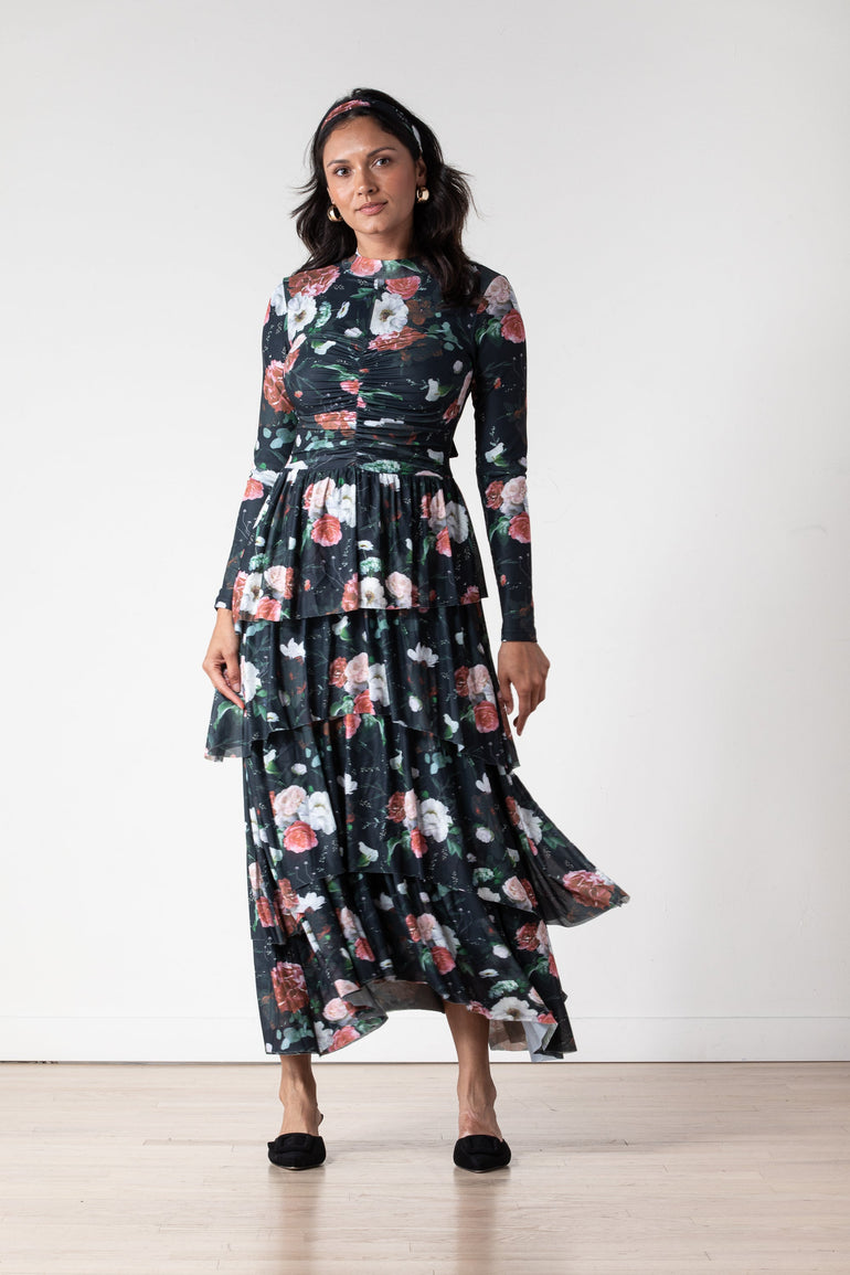 Crafted from our signature stretch mesh and fully lined for ease, the Europa Dress is back — in fresh new patterns. With mid-chest ruching, fitted sleeves, and a softly tiered skirt, it offers that unmistakable blend of comfort and elegance that makes it a go-to for every special occasion.