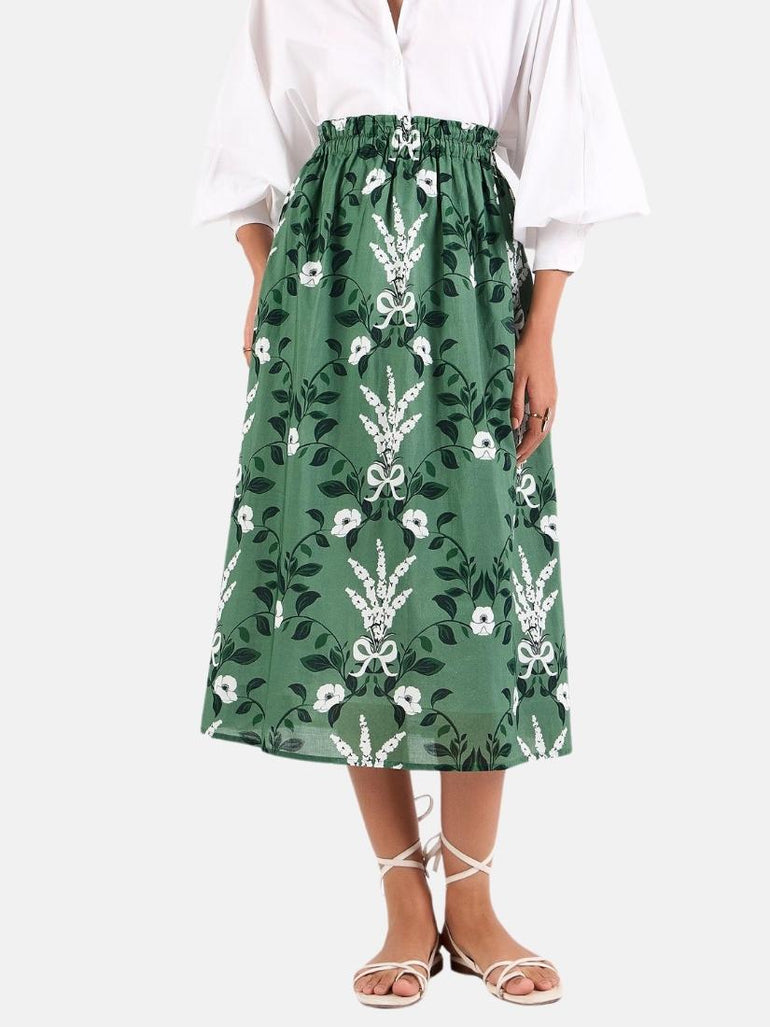 Introducing the Amber skirt, an even more comfortable version of our beloved Anna skirt. The midi skirt features a flattering A-line silhouette, hidden pockets, and offers exceptional comfort at the waist thanks to its elastic waistband. Pair it with flats for a casual daytime look, or dress it up with heels. Amber is made from a soft, breathable cotton cambric fabric. This print design captures the serene beauty of Provence's endless poppy and lavender fields, where the air is filled with the soothing scent of spring.