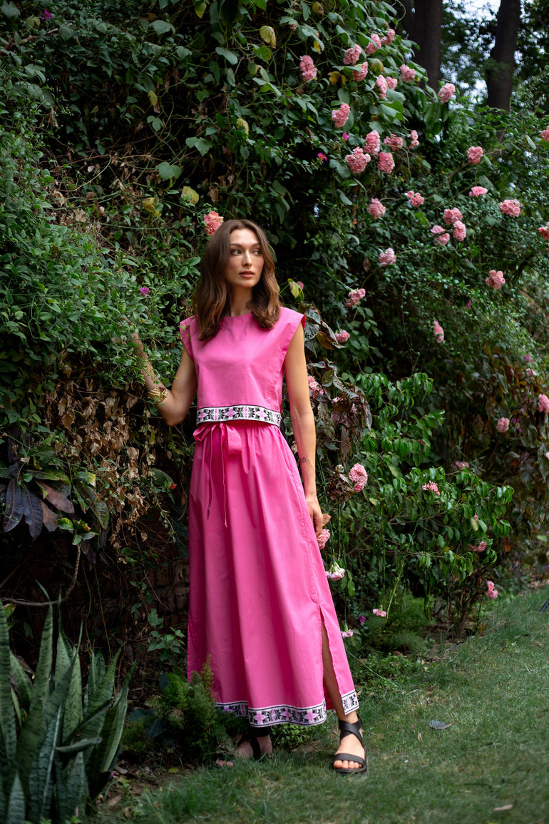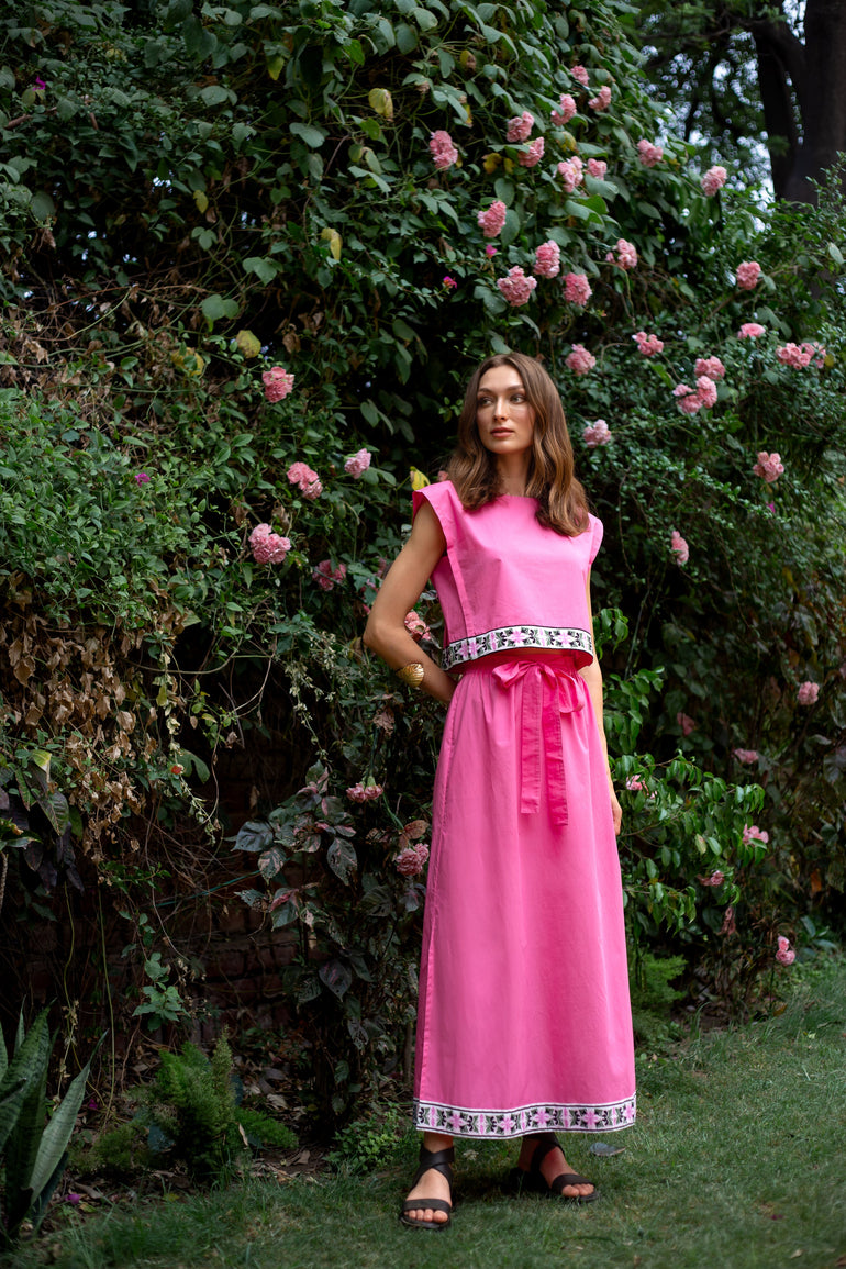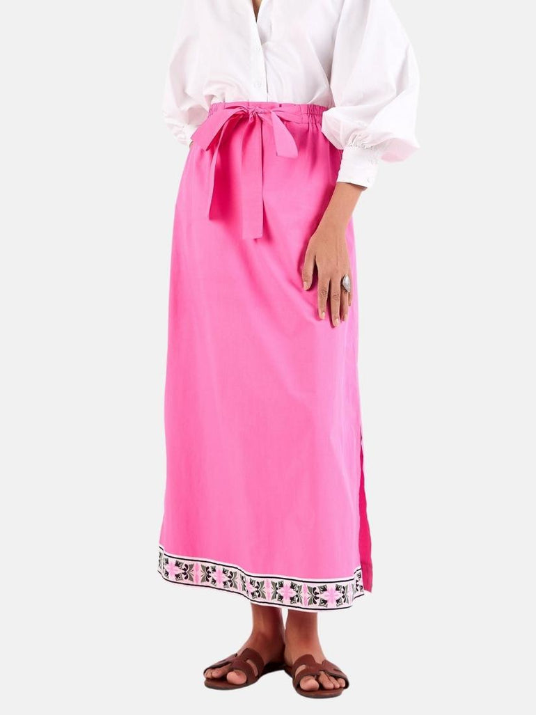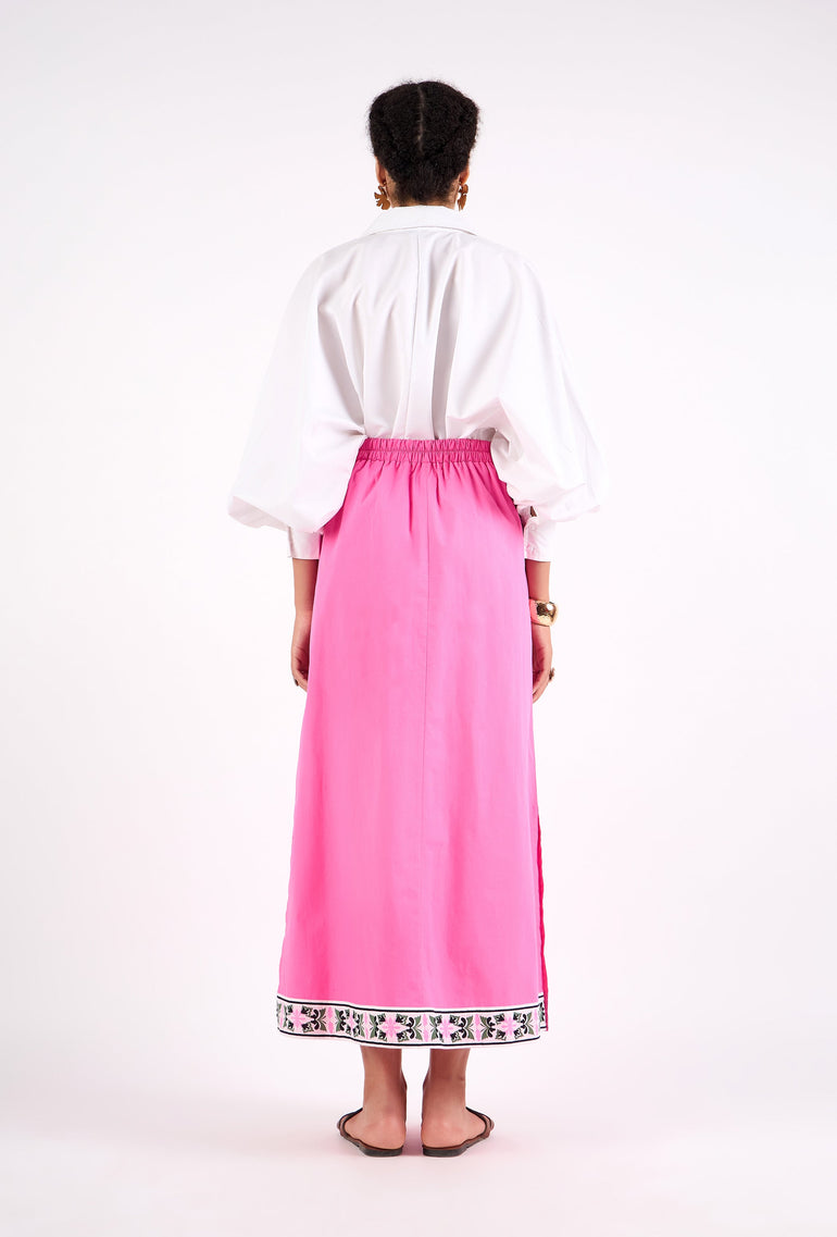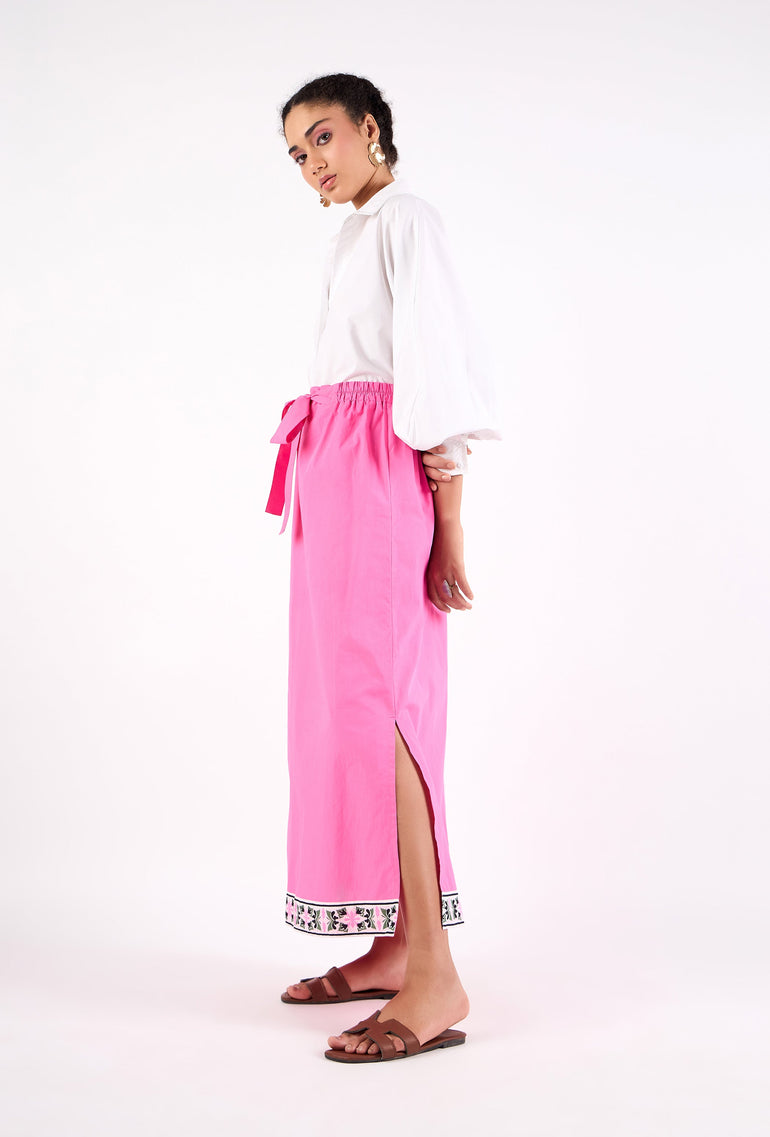 With its straight shape, hidden pockets and banded waist featuring back elastic, the Tyler skirt exudes understated sophistication. Complete with a removable tie sash, subtle side slits, and a fully lined construction, it's a versatile must-have for any wardrobe. Tyler is crafted from breathable premium Cotton Poplin.