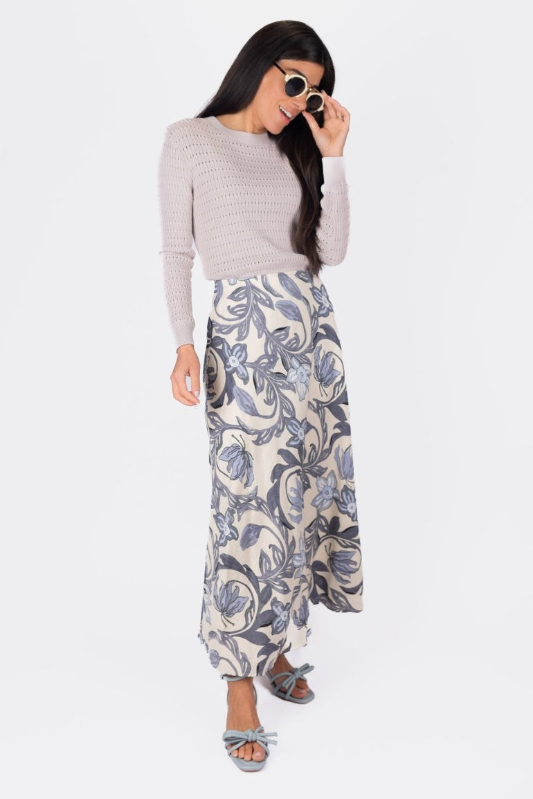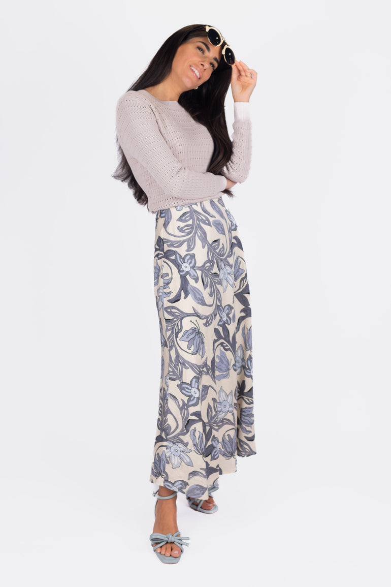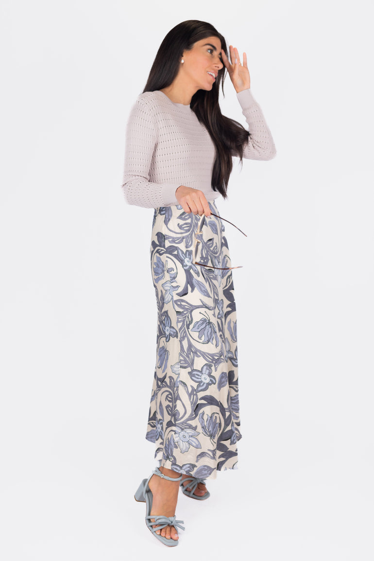 Soft, serene, and effortlessly graceful — the Lavender Garden Wrap Skirt features a delicate floral print in muted lavender and dusty blue tones. Crafted in a flowy silhouette with an adjustable wrap tie, this piece blends comfort and femininity for everyday wear or dressed-up moments. Perfectly paired with knits, neutrals, or your favorite sandals.