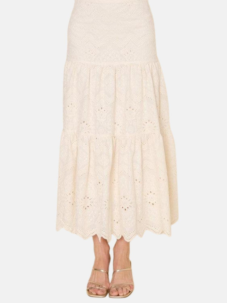 High-Waisted Embroidered Eyelet Maxi Skirt