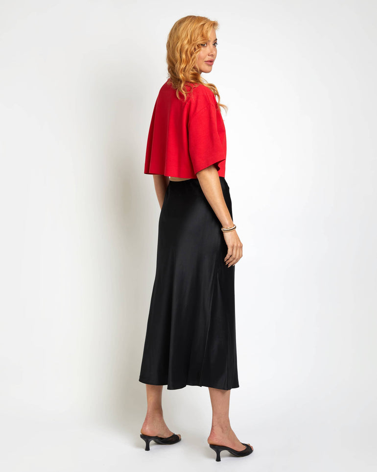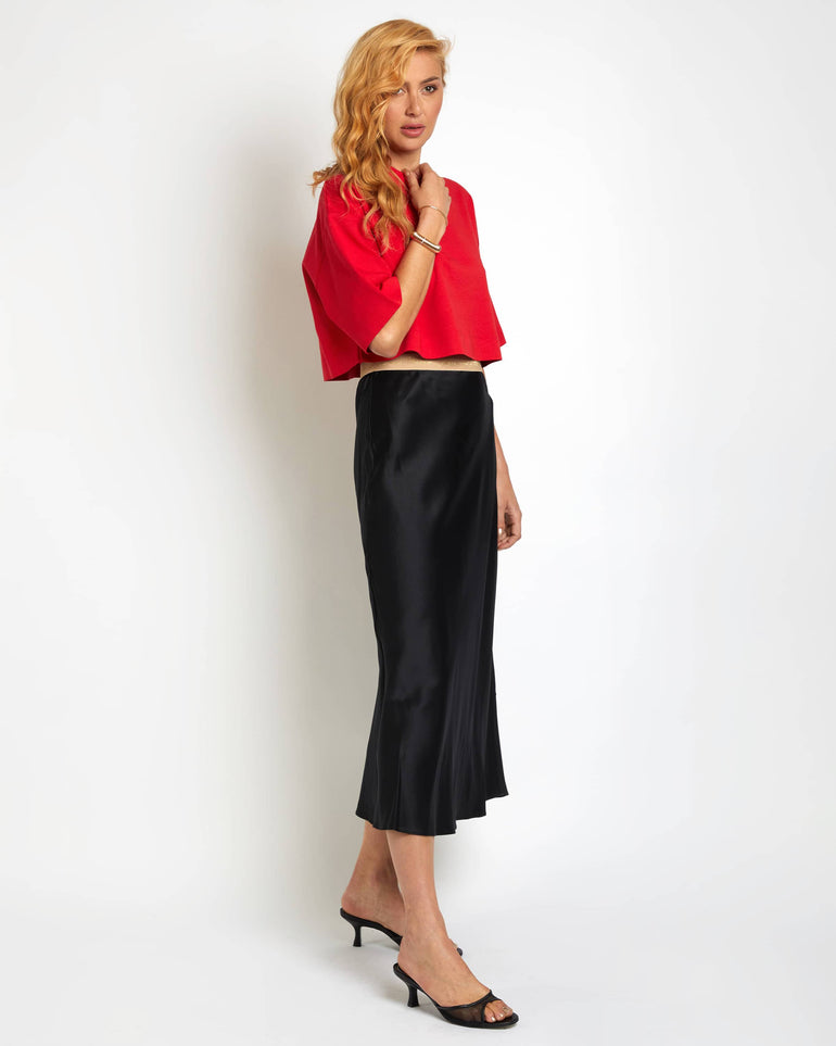 Maxou is our tribute to the multirole woman. Luxurious 100% Silk fabrication drapes beautifully for a glorious polished look with an easy slip on construction for day to night ease. The confidence of a woman is recognized most when she is in her element, expressive and in a state of joy. Maxou blends opulence and class with modernity, perfect for combining with ballet flats for musing, heels for bold evenings or a sandal for an unexpected ocean side vacation. A necessity for every wardrobe.