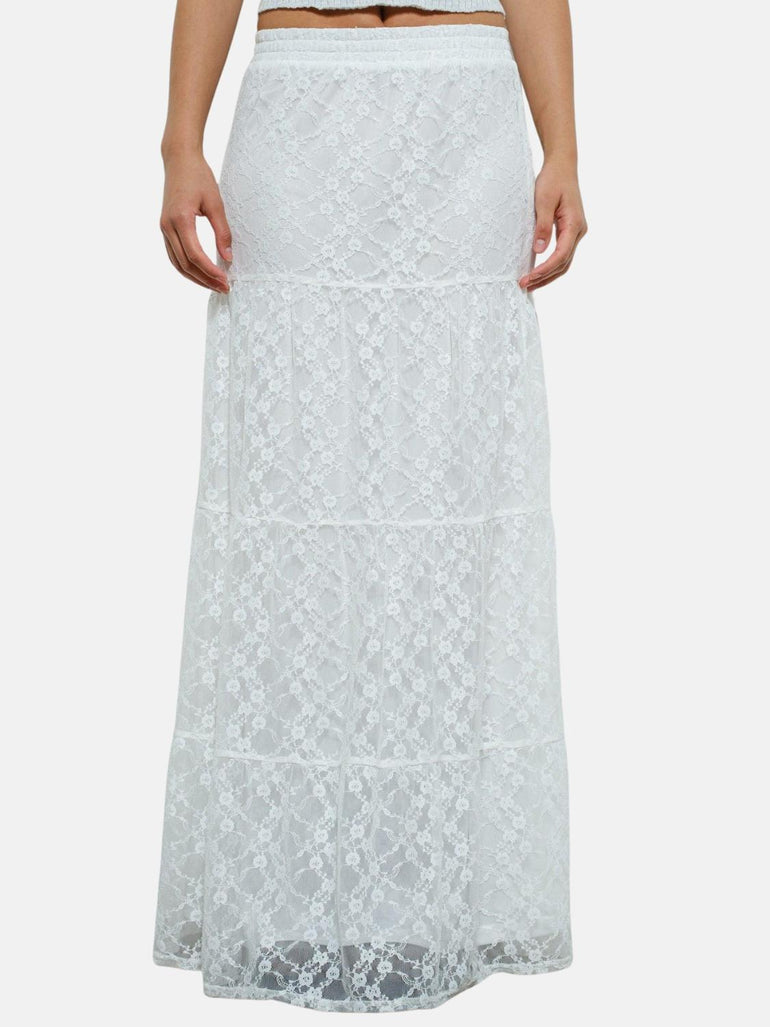 Mykonos Tiered Lace Skirt in White