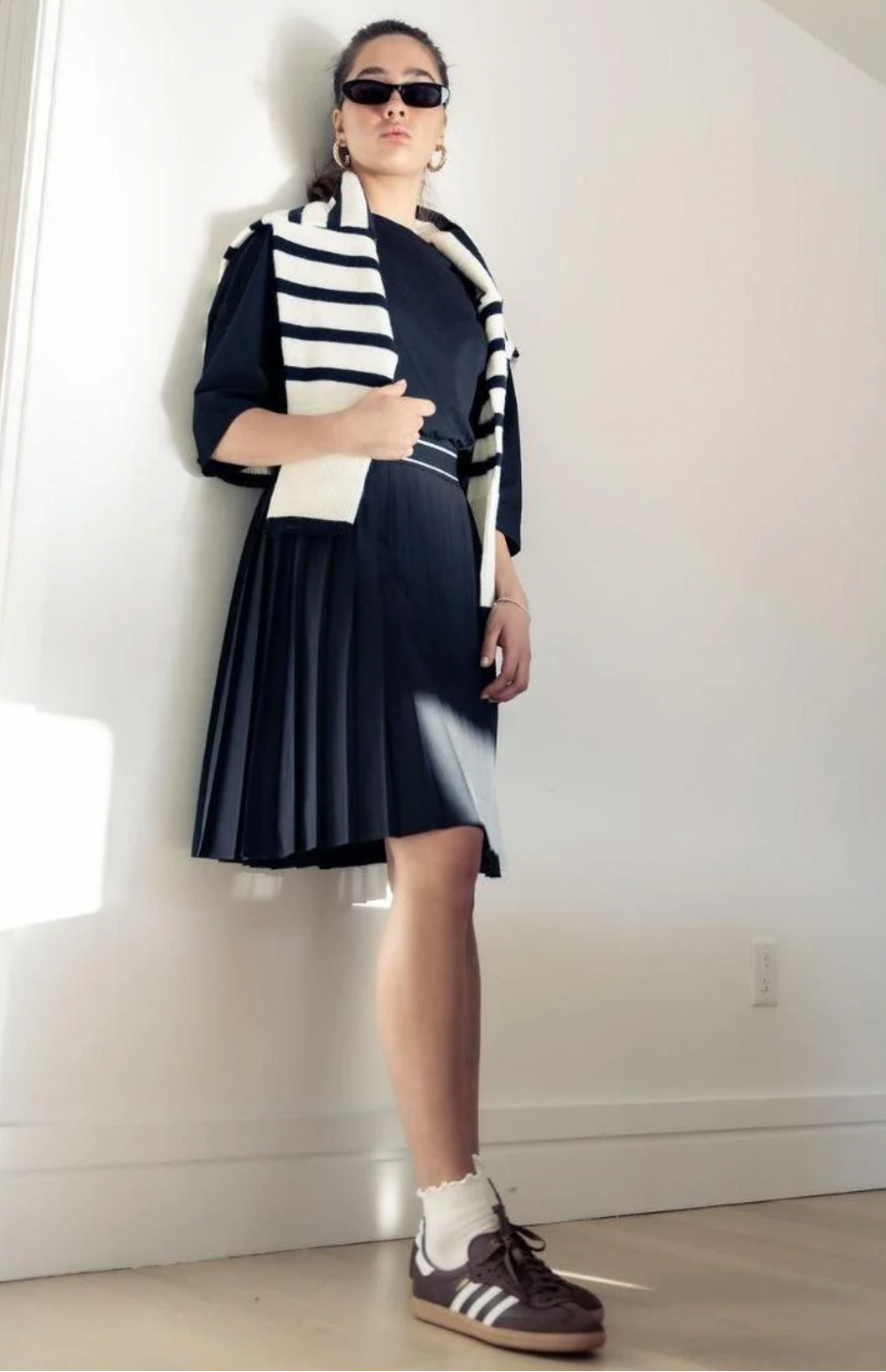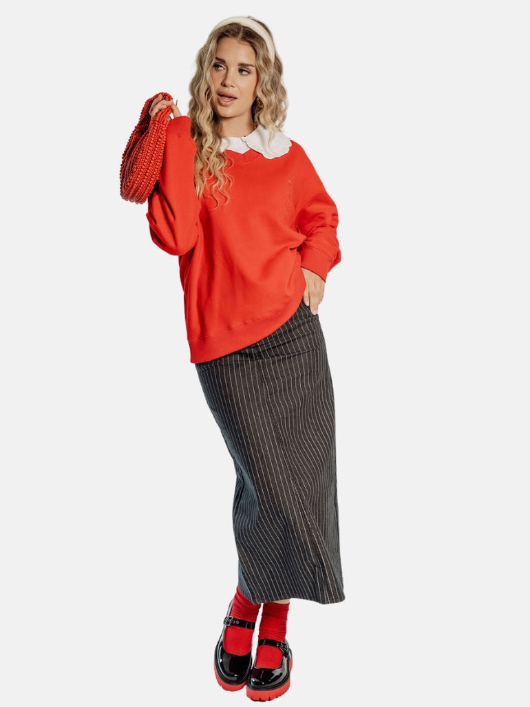This pinstripe denim skirt walks the line between sharp and laid-back. The straight fit and back slit give it a clean, tailored feel, while the pinstripes add just enough edge. Whether you’re going polished or keeping it casual, it fits right in.