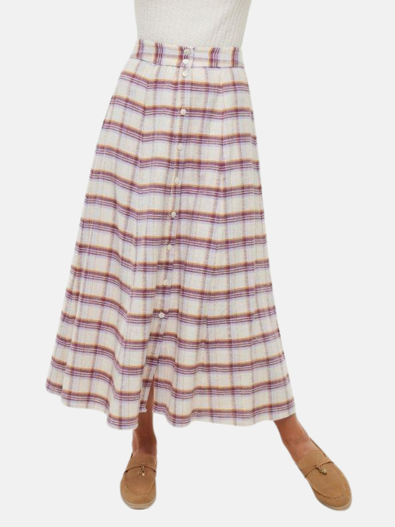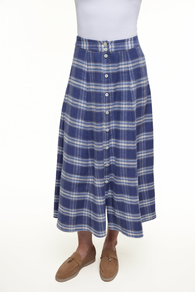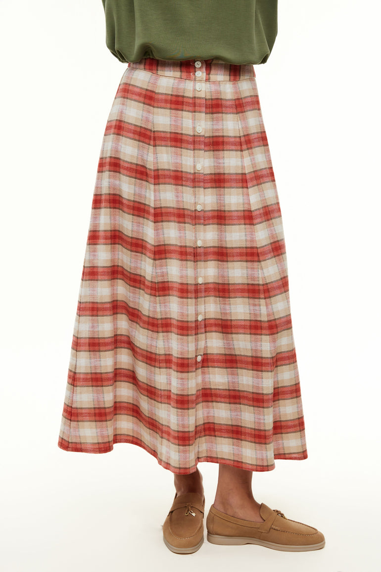 Introducing our Button-Up A-Line Skirt, adorned with custom Olivvi laser-engraved mother of pearl buttons. After all, it's all about the details. Choose from three captivating plaid patterns, all in 100% cotton. This skirt is the perfect addition to your wardrobe, blending classic design with modern sophistication.